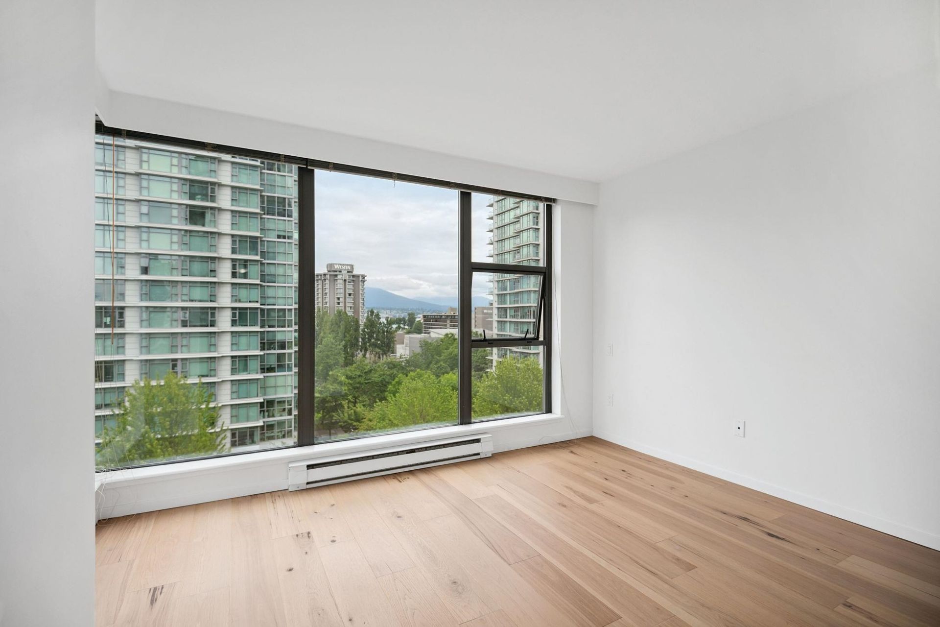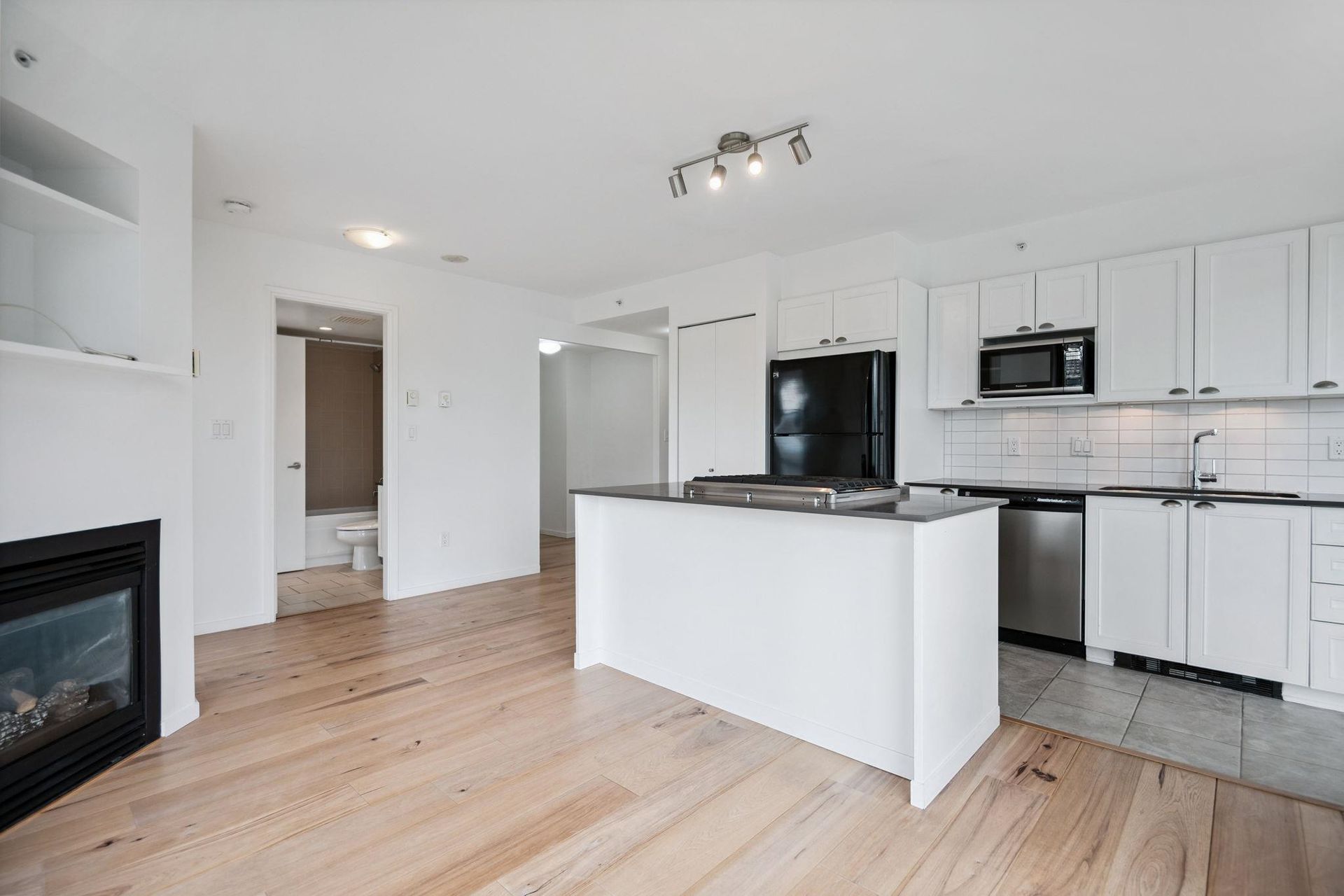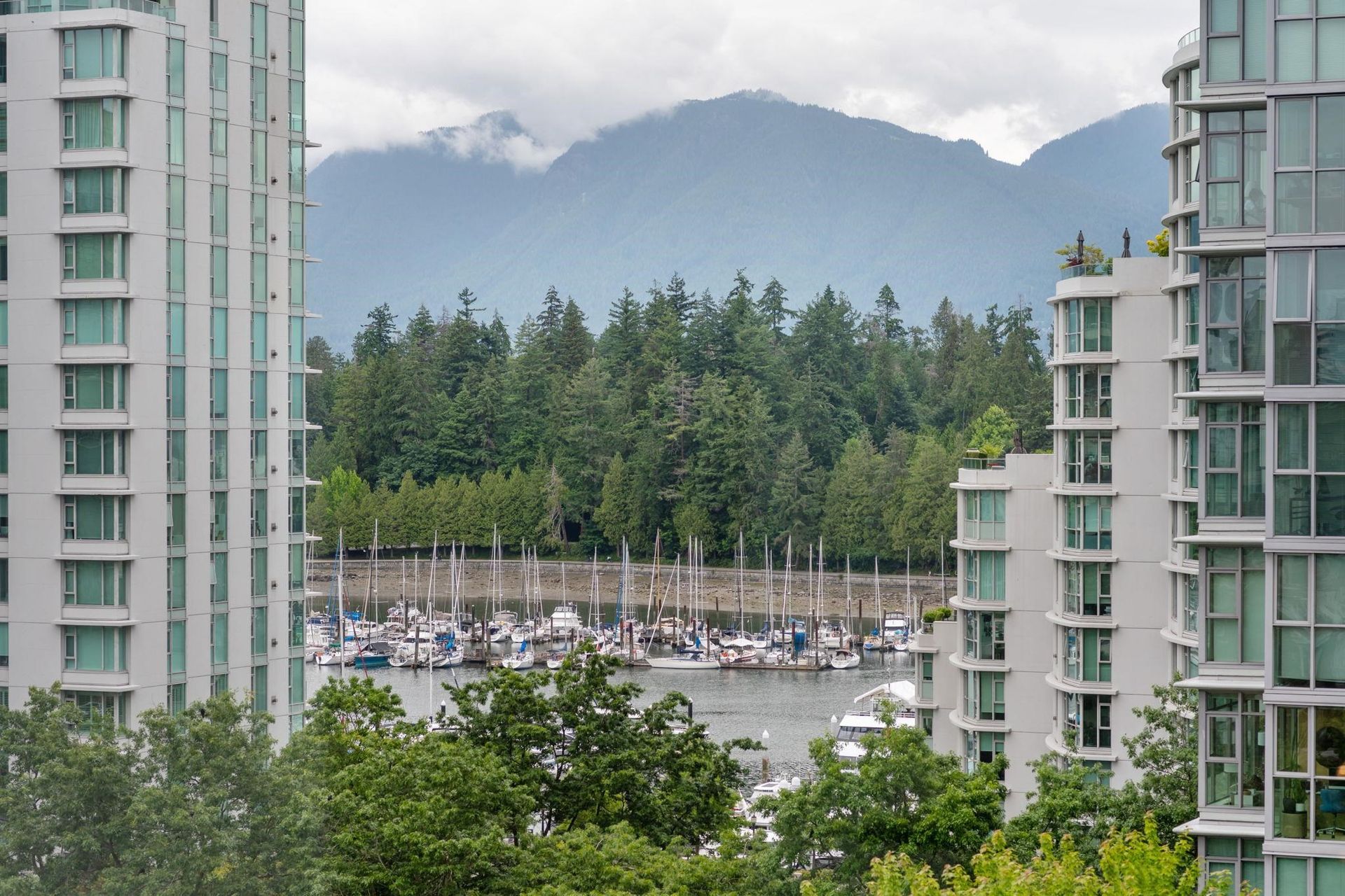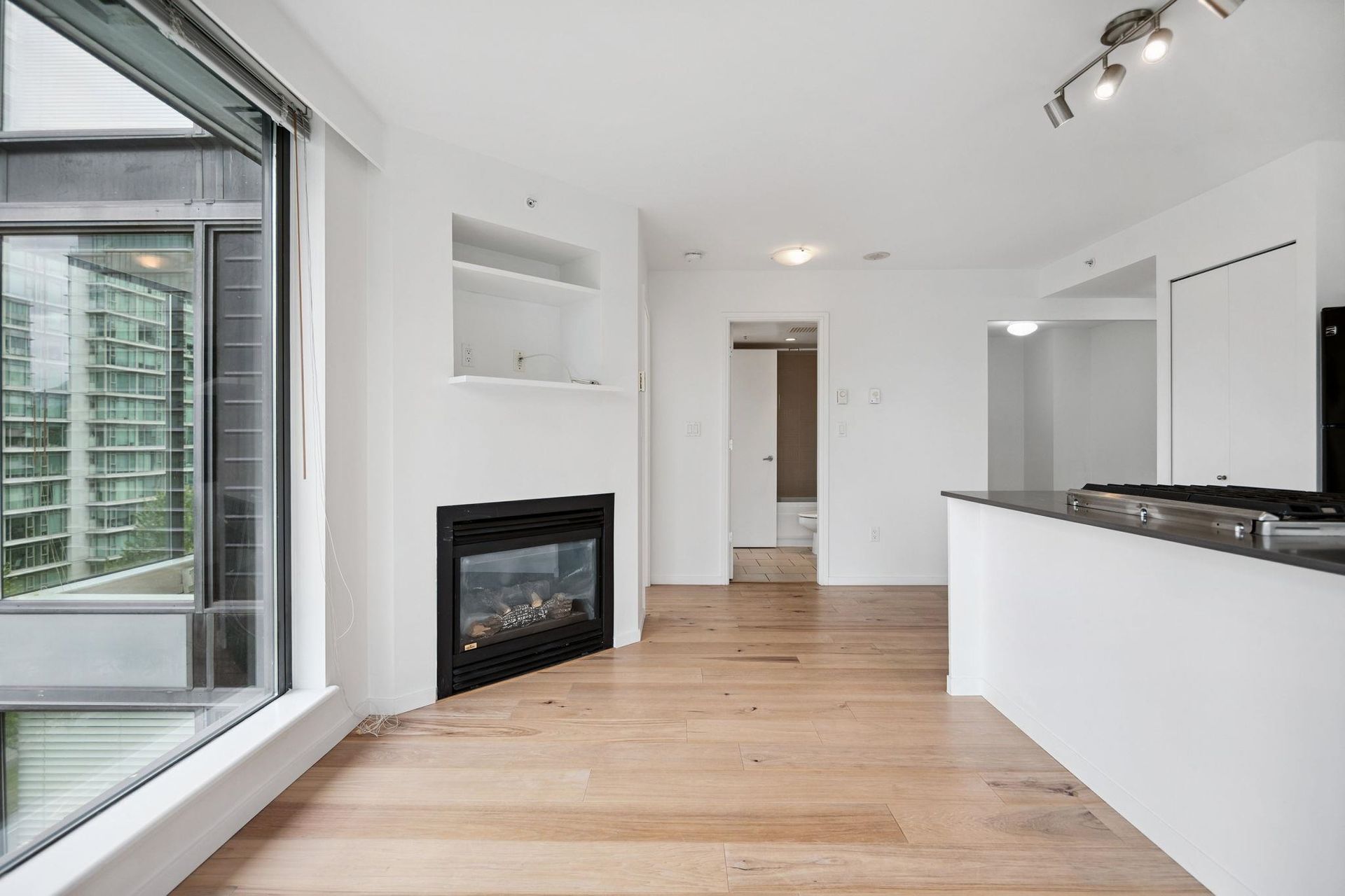 Renovated 1 bed/1 bath + DEN w/ WATER VIEWS! Embrace the best of West End & Coal Harbour living at 'The Park'. Enjoy ocean, mountain & Stanley Park views from every room, enhanced by floor-to-ceiling windows that fill the space w/ natural light. This bright 669 sqft corner home features an open concept kitchen & living area w/ a cozy gas fireplace, dining space, a generous primary bedroom w/ dual closets, a spa-inspired ensuite, & in-suite laundry. Thoughtful updates include renewed cabinets, quartz countertops, stainless steel appliances w/ gas range, porcelain tile bathroom, white oak flooring & modern light fixtures. Steps to the seawall/Stanley Park, marina, transit, restaurants, & shopping. 1 unique gated/enclosed parking stall w/ attached locker within. Pets & Rentals allowed.
