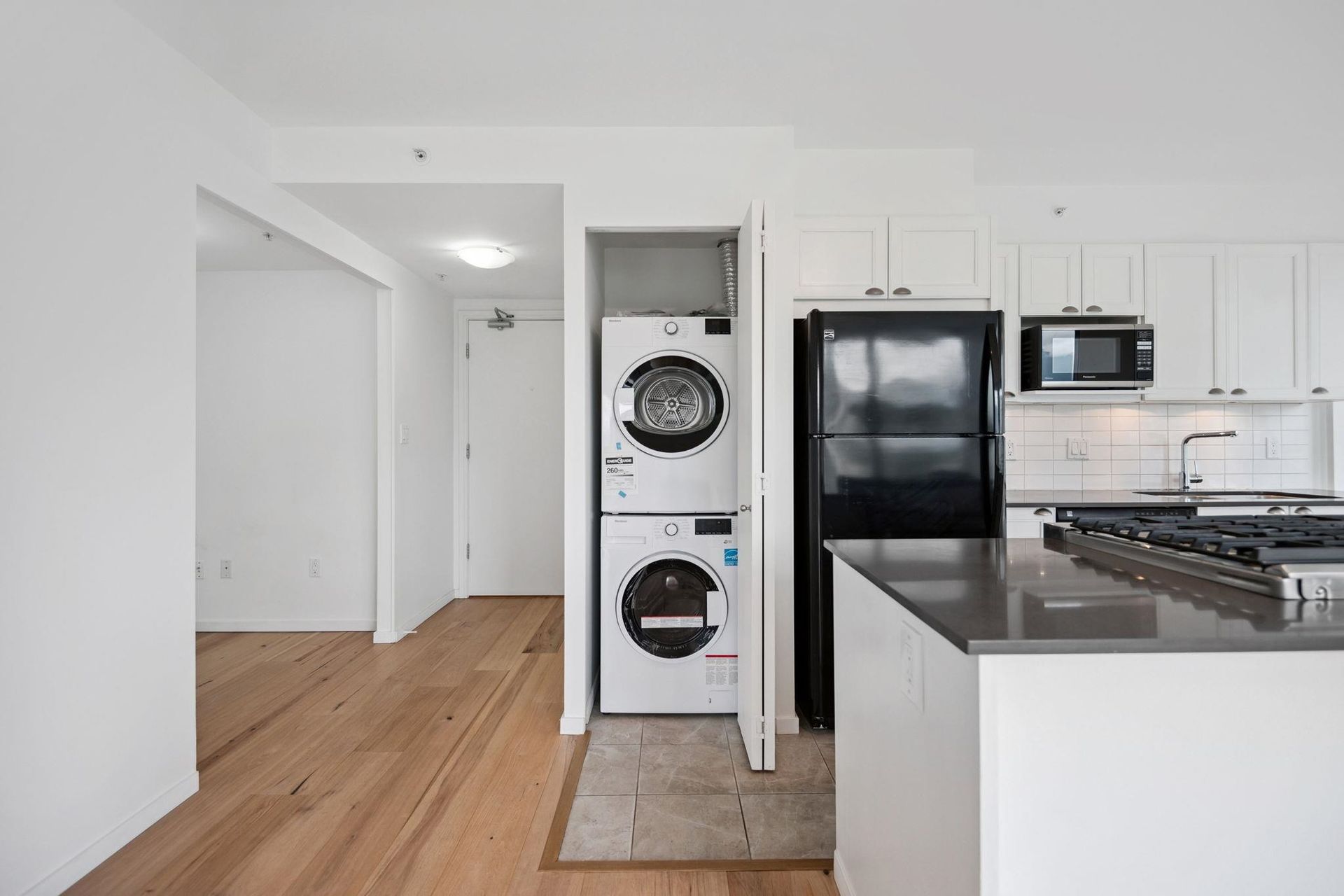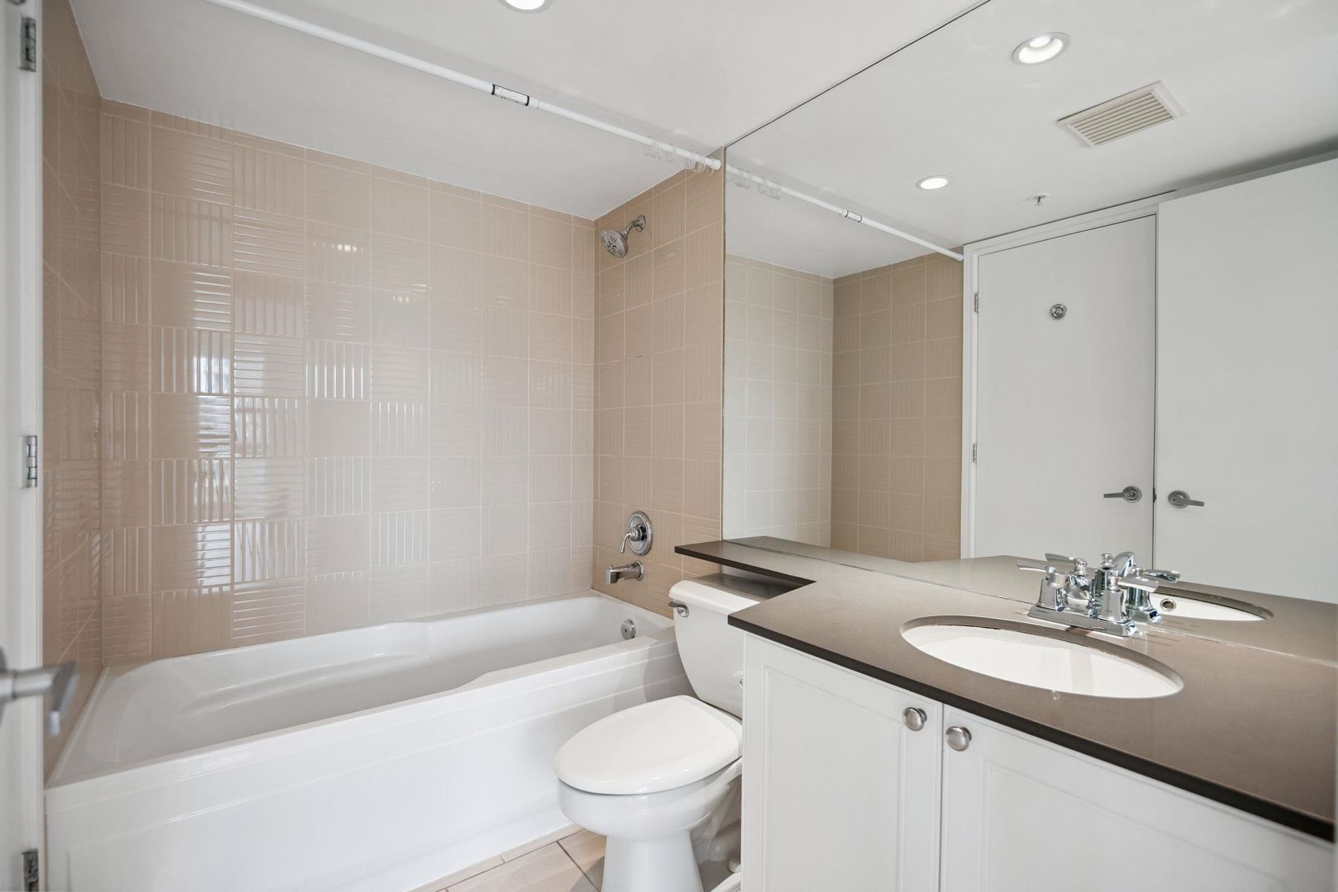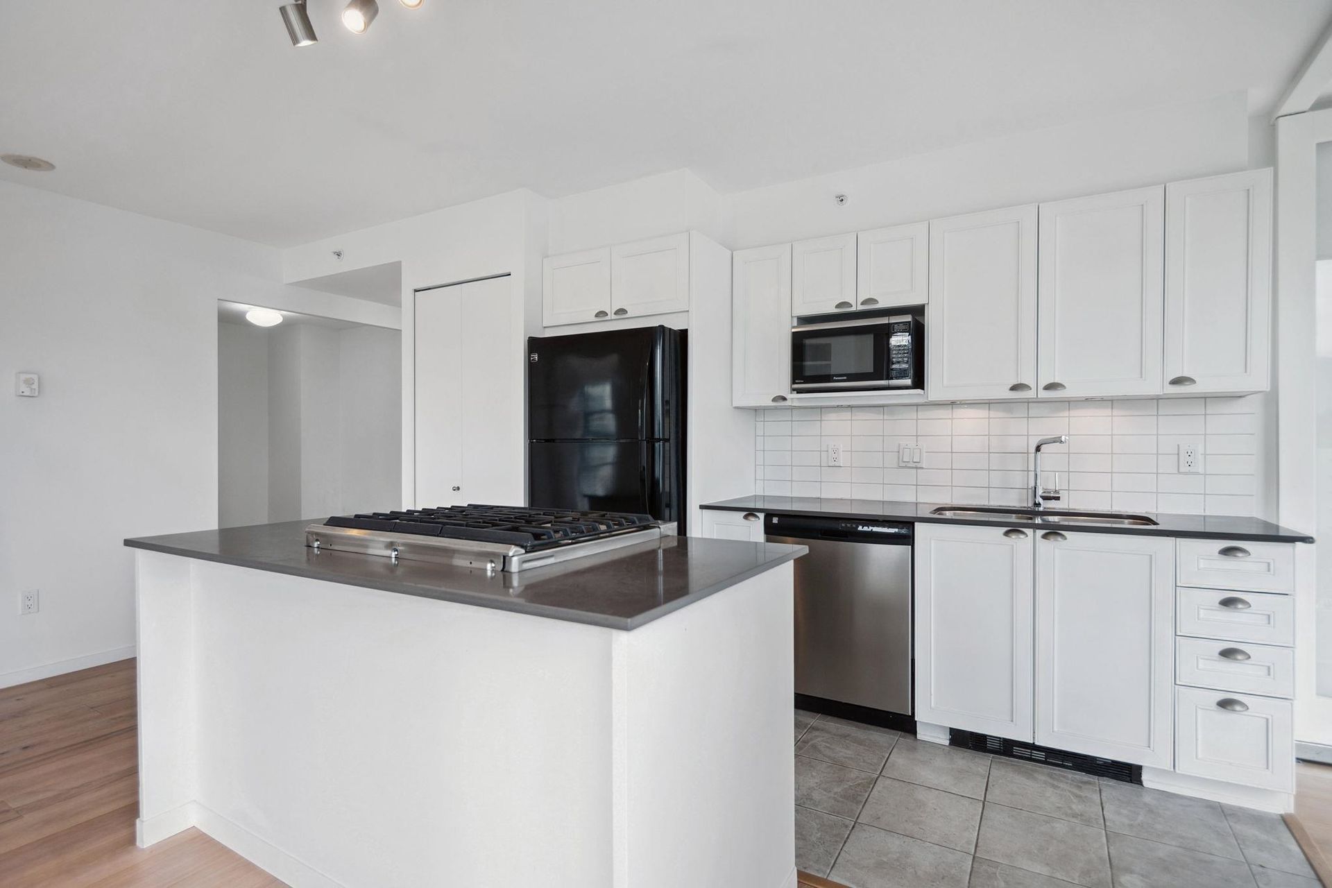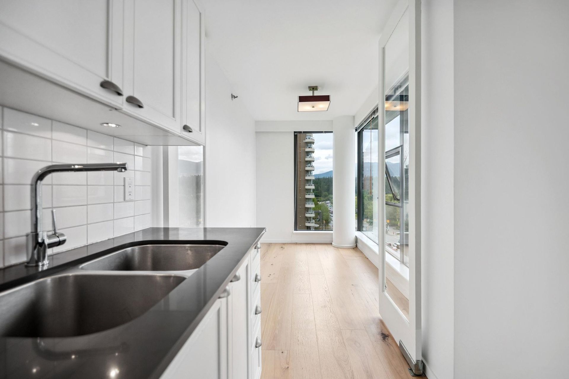 Renovated 1 bed/1 bath + DEN w/ WATER VIEWS! Embrace the best of West End & Coal Harbour living at 'The Park'. Enjoy ocean, mountain & Stanley Park views from every room, enhanced by floor-to-ceiling windows that fill the space w/ natural light. This bright 669 sqft corner home features an open concept kitchen & living area w/ a cozy gas fireplace, dining space, a generous primary bedroom w/ dual closets, a spa-inspired ensuite, & in-suite laundry. Thoughtful updates include renewed cabinets, quartz countertops, stainless steel appliances w/ gas range, porcelain tile bathroom, white oak flooring & modern light fixtures. Steps to the seawall/Stanley Park, marina, transit, restaurants, & shopping. 1 unique gated/enclosed parking stall w/ attached locker within. Pets & Rentals allowed.