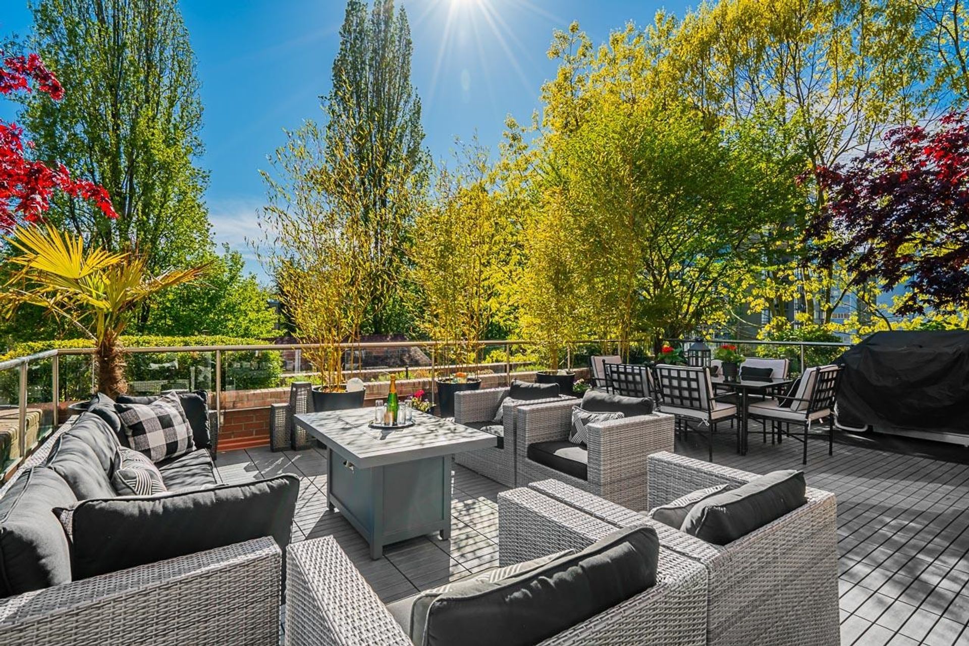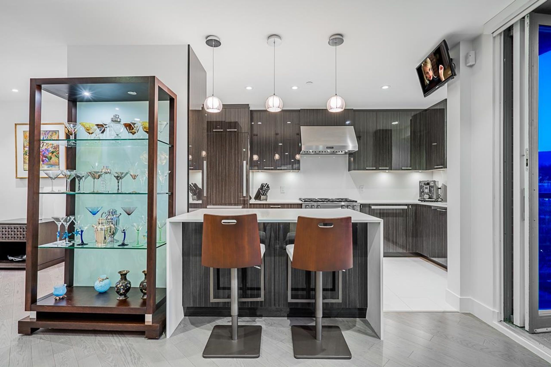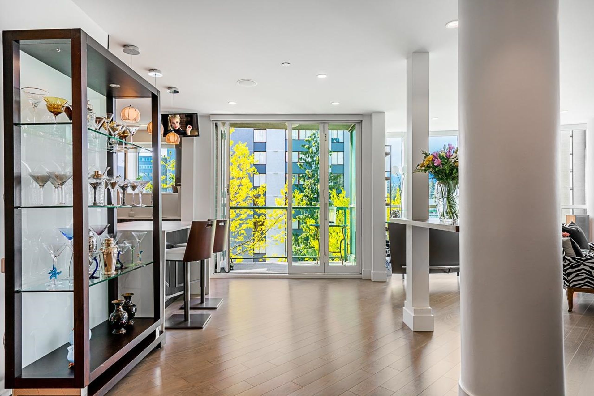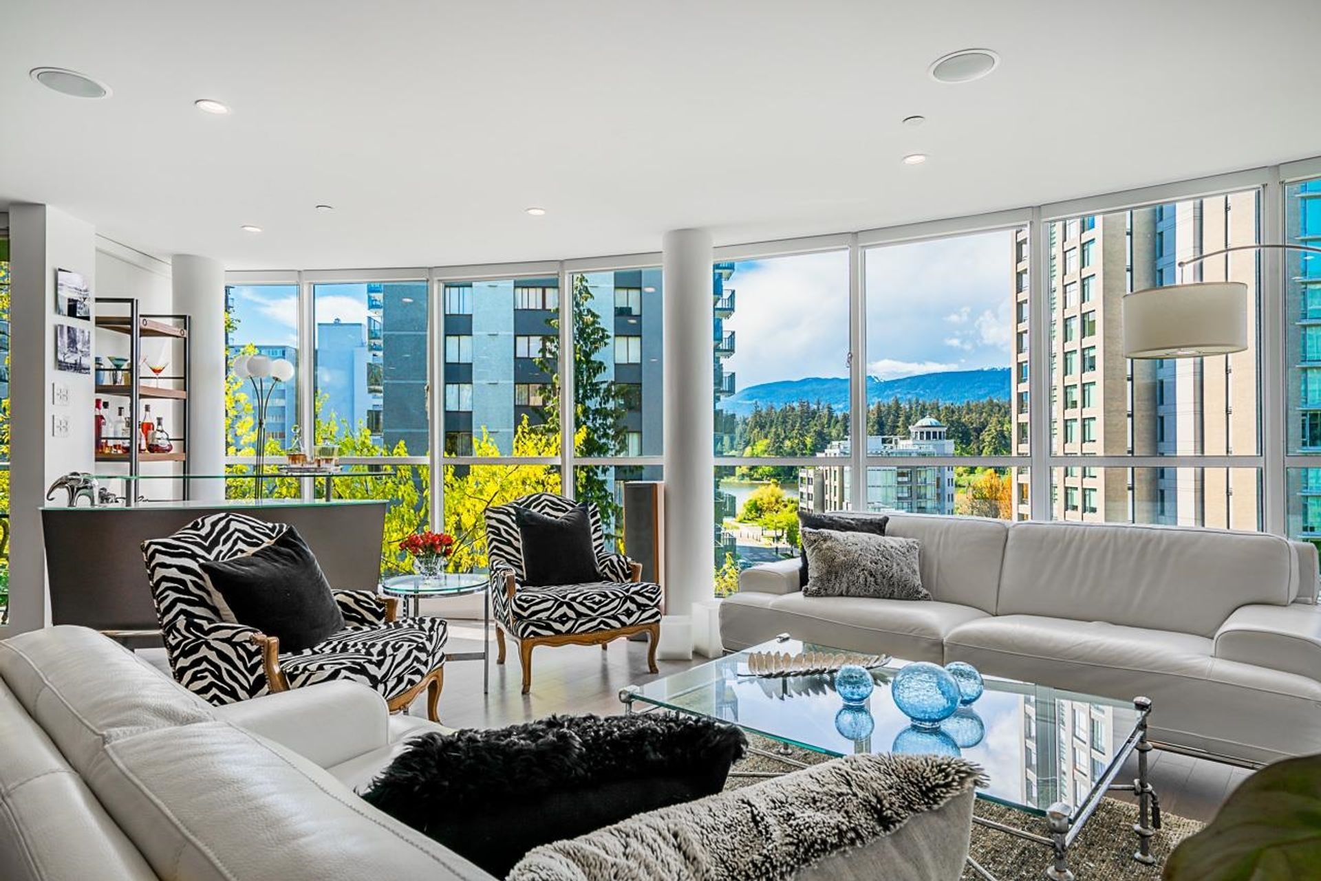 STUNNING 2 bedroom with almost 1600 sqft of interior PLUS OVER 600 sqft of breathtaking exterior patio space with INCREDIBLE VIEWS OF THE NORTH SHORE MOUNTAINS, MARINA -- 30 seconds walk to Stanley Park. An exceptional home, rebuilt from the studs up, showcasing meticulous craftsmanship and luxurious finishes, include premium European hardwood flooring, a full Miele appliance suite, marble bathrooms, radiant hot-water heating, and AC. Expansive, open-concept layout ideal for entertaining! Complete with garden terrace fireside lounge and outdoor dining area—your private urban oasis. The Residences at Alberni, offering sophisticated city living. Amenities include a pool, gym, two parking stalls, and oversized storage. Pets welcome -- incredible VALUE.