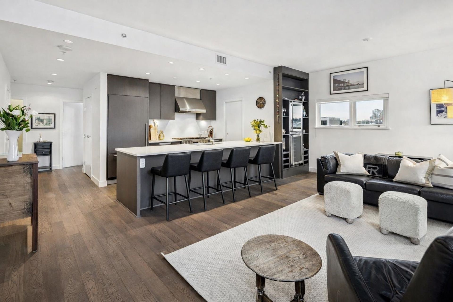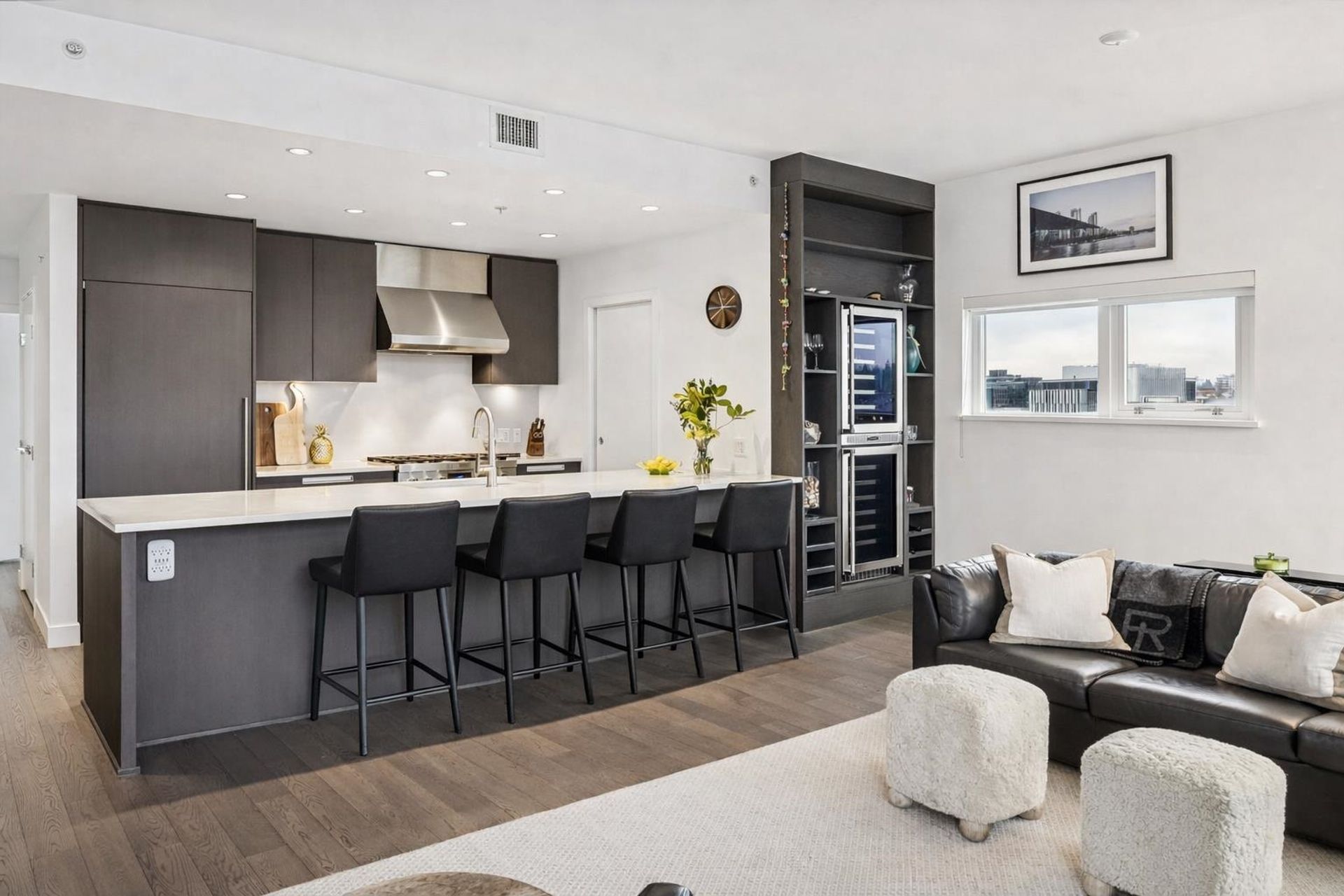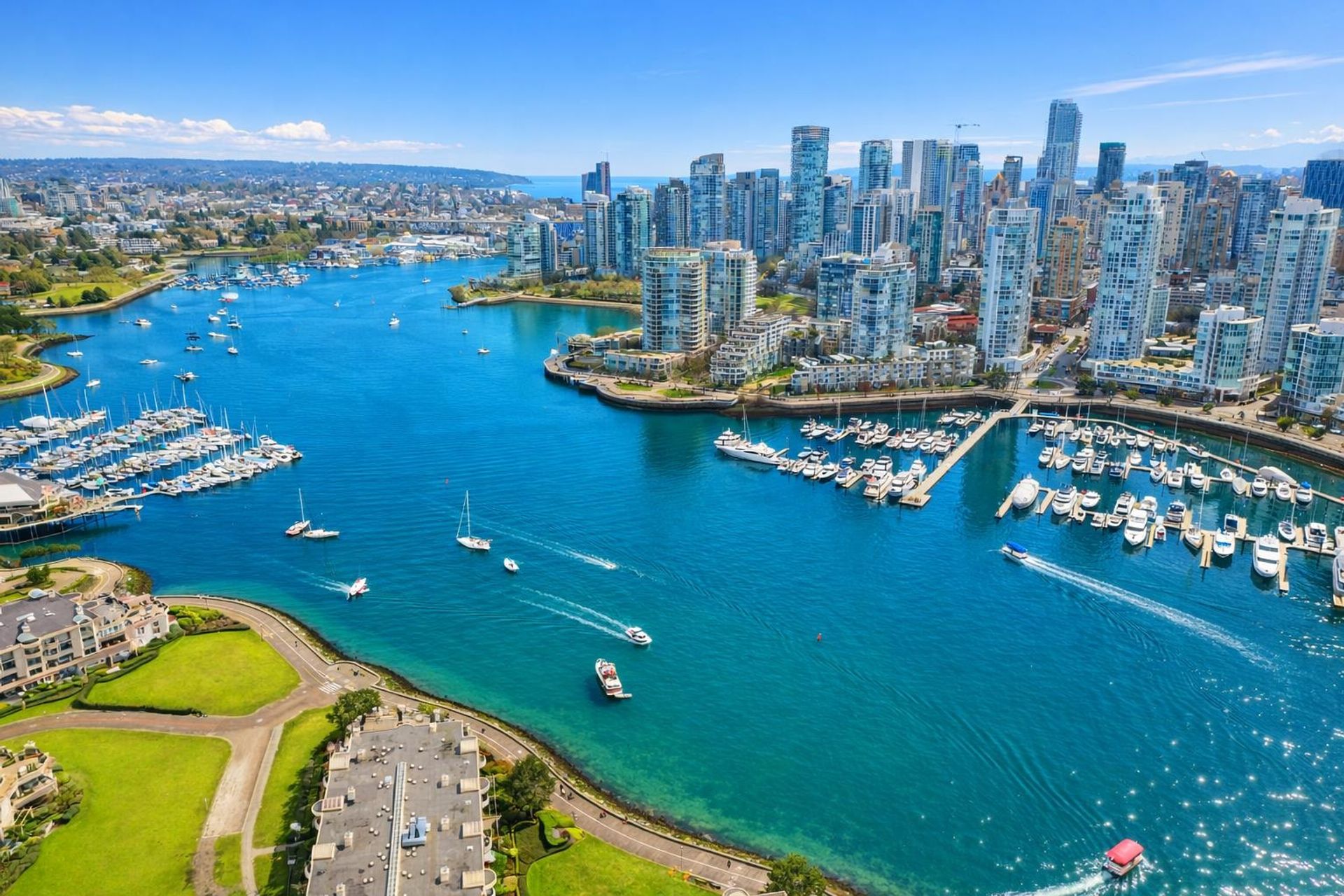 Luxurious 2 BED, 2 BATH + DEN w/ WATER VIEWS at 'The James' by Cressey offers 1,271 sqft of thoughtfully designed, expansive interior living. Feat. incl, sleek hardwood flooring, high-end S/S & Miele appliances, A/C, radiant in-floor heating, 2 integrated beverage fridges, custom millwork, extensive in-suite storage & primary walk-in closet, & a dedicated pantry. Floor-to-ceiling windows provide western exposure with open views of Downtown, False Creek, and Mount Pleasant. A massive private terrace w/ a gas fireplace creates an exceptional extension of the living space, ideal for entertaining. Incl. 2 side by side parking stalls w/ EV capability, concierge, gym & rooftop terrace & lounge w/ BBQ area. Impeccably maintained, steps to the seawall & endless restaurants + cafes. A true gem.