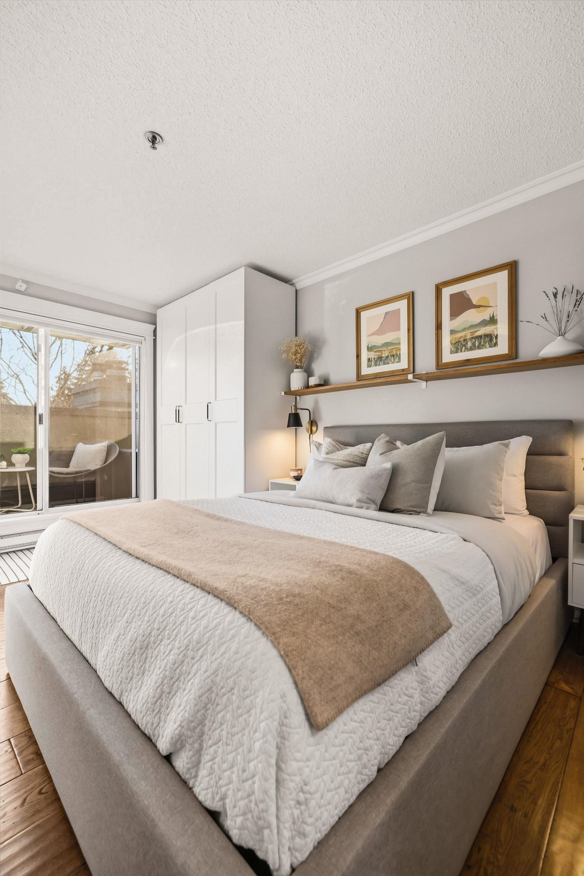 Welcome to this stunning penthouse in Kitsilano. This south facing 2bed+2bath 1,129 sqft home sprawls across the entire length of the top floor w NO shared walls. The expansive private patio extends your living space outdoor, ideal for quiet summer evenings. Bask in 3 sunny exposures & natural light from multiple skylights. Features include: spacious living room w cozy wood burning fireplace, engineered hardwood, charming wainscoting & crown moldings, custom built in’s, stainless steel appliances, wine fridge & granite countertops. Thoughtful layout w bedrooms on opposite sides of the home. The dreamy primary suite offers a spectacular ensuite w bay window, heated floors, glass rain shower & luxe free-standing bathtub. Rain-screened building w 2 parking w EV. Pets welcome. A TRUE GEM!