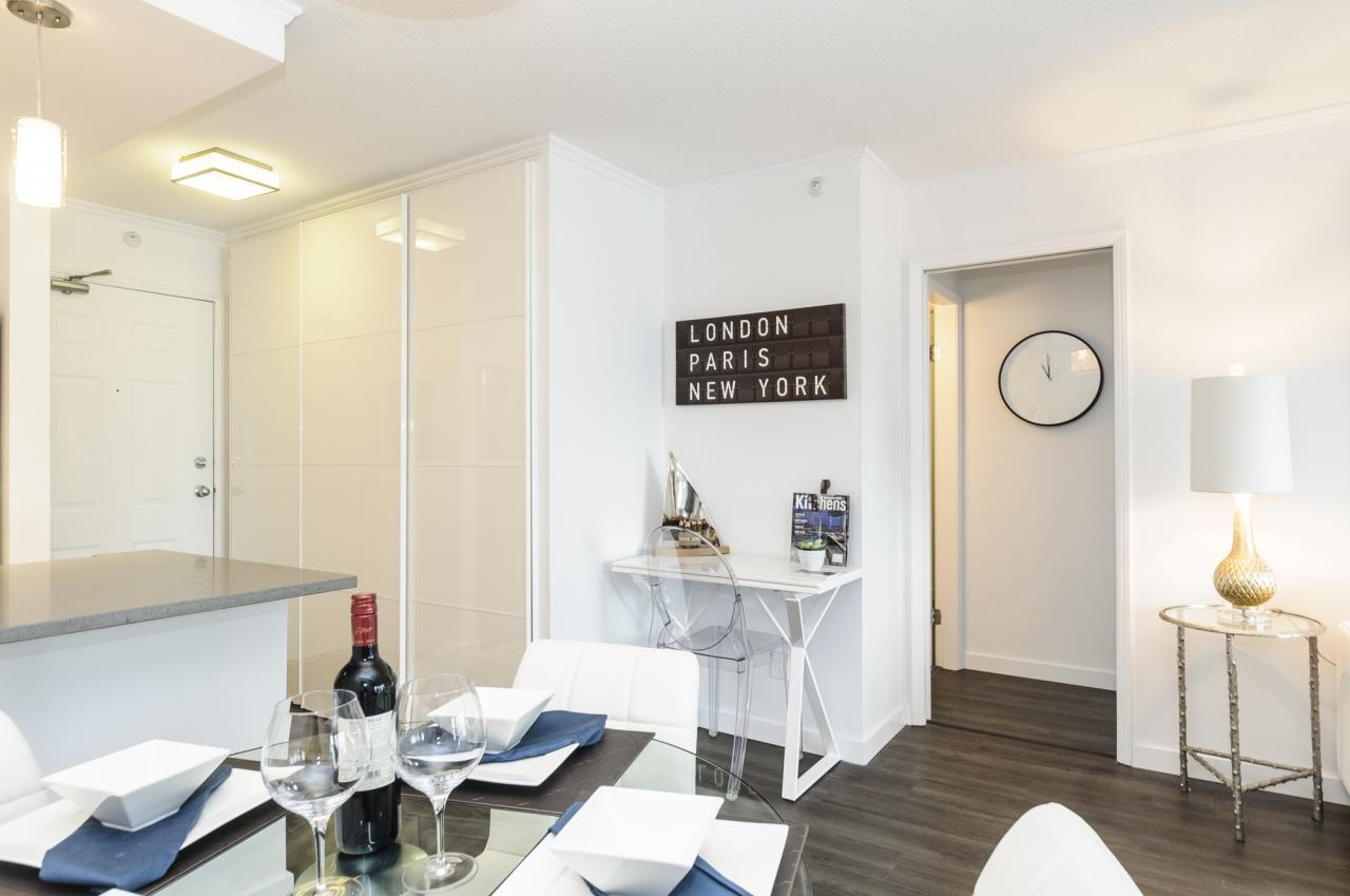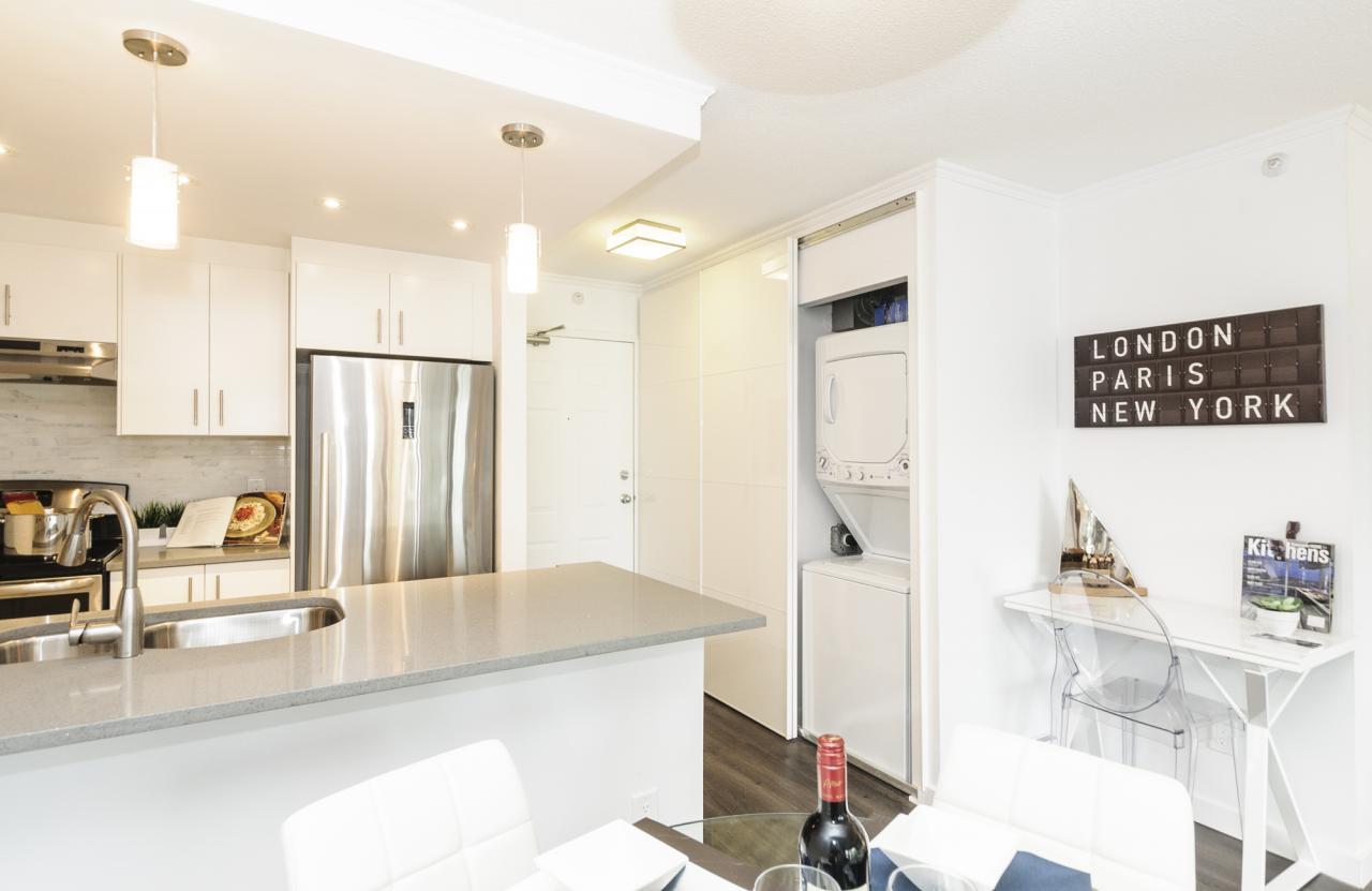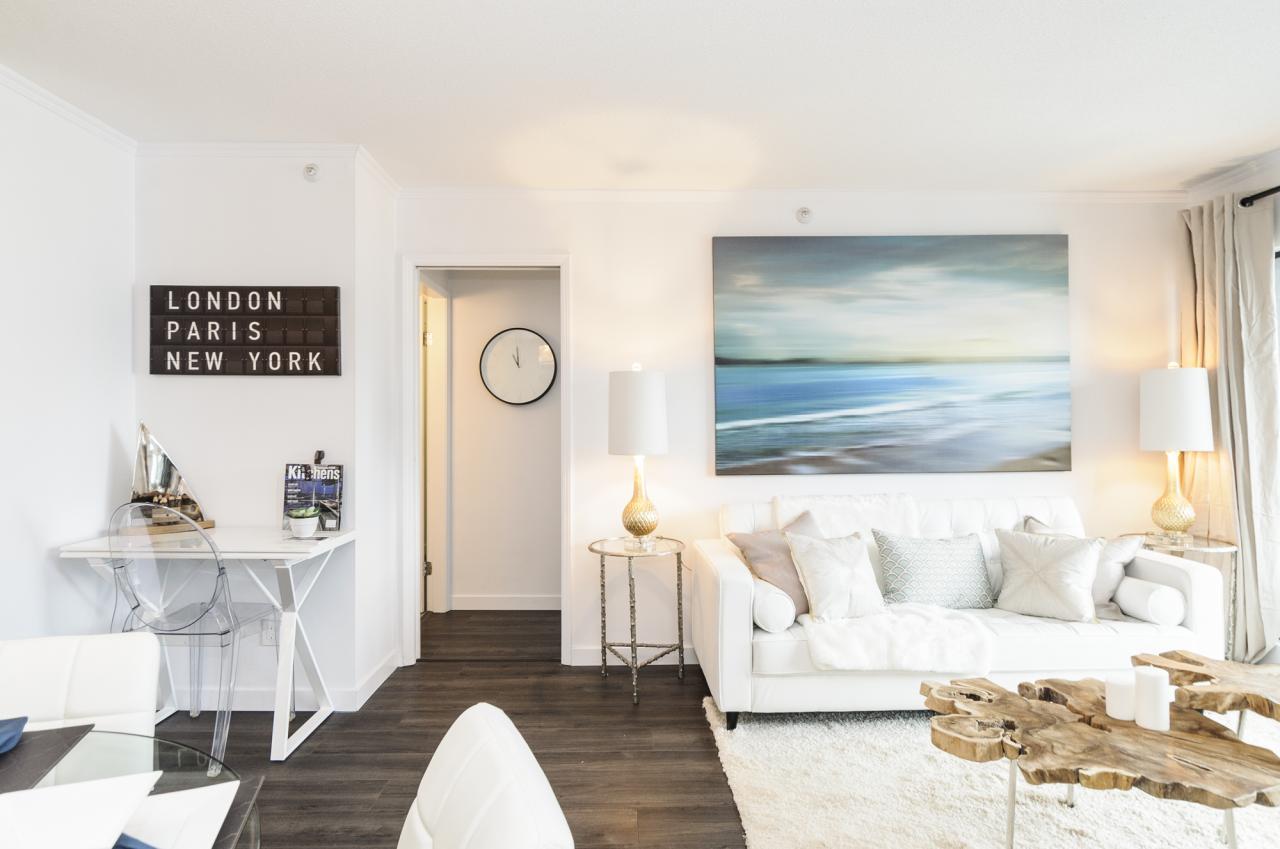 A & N Construction's latest renovation project at Imperial Tower! This amazing 2 bed/2 bath is perfectly laid out with 2 ensuite bathrooms, ample living space and large deck. This unit has been completely renovated including all new appliances, fully upgraded kitchen, bathrooms and flooring. Master bedroom has a walk-in closet or storage space. Unbelievable location in a well run building with a gym, amenity room and a Starbucks downstairs for your convenience! All staging is available for purchase seperate from purchase price. Move in ready or great for investment! Don't wait around as this will go fast! OPEN HOUSE FRIDAY 10-12AM and SATURDAY 2-4PM.