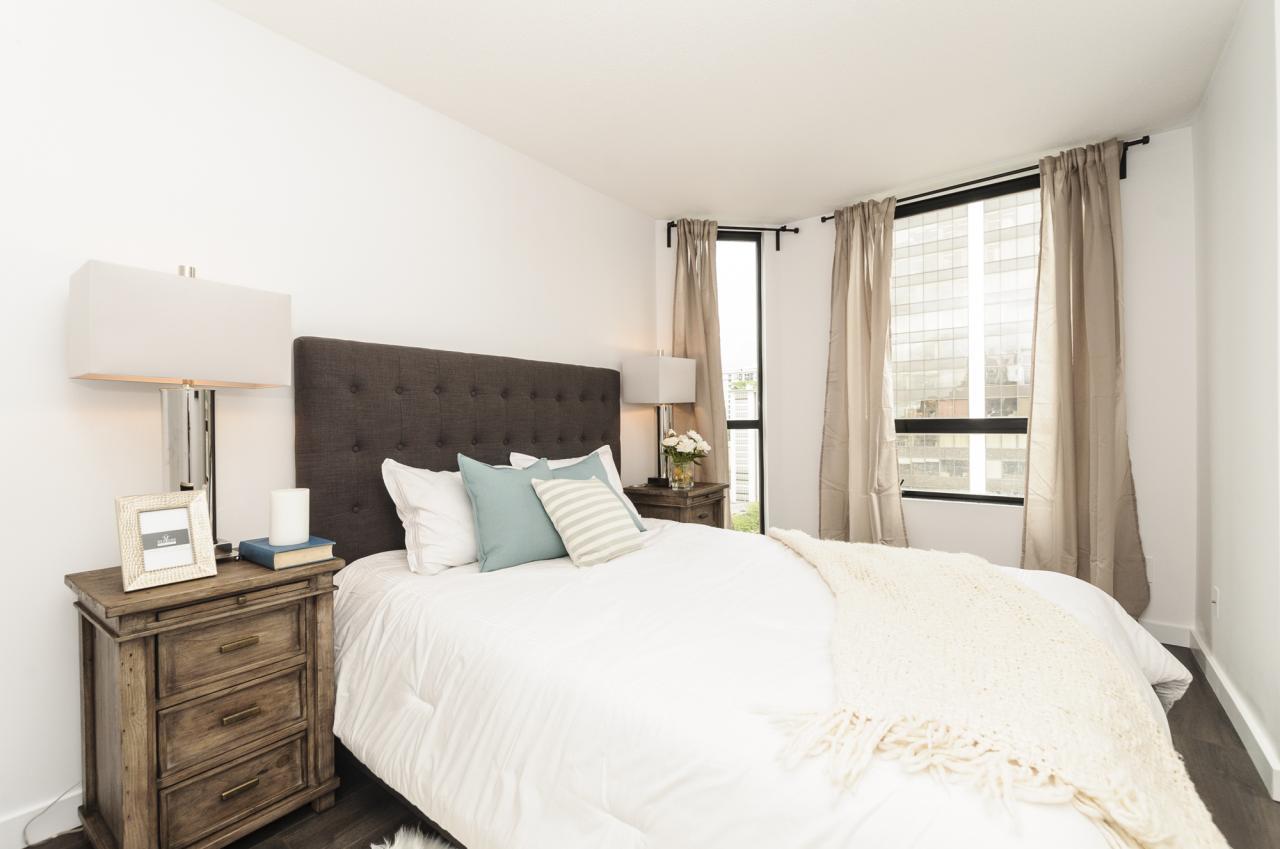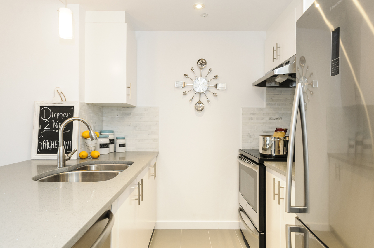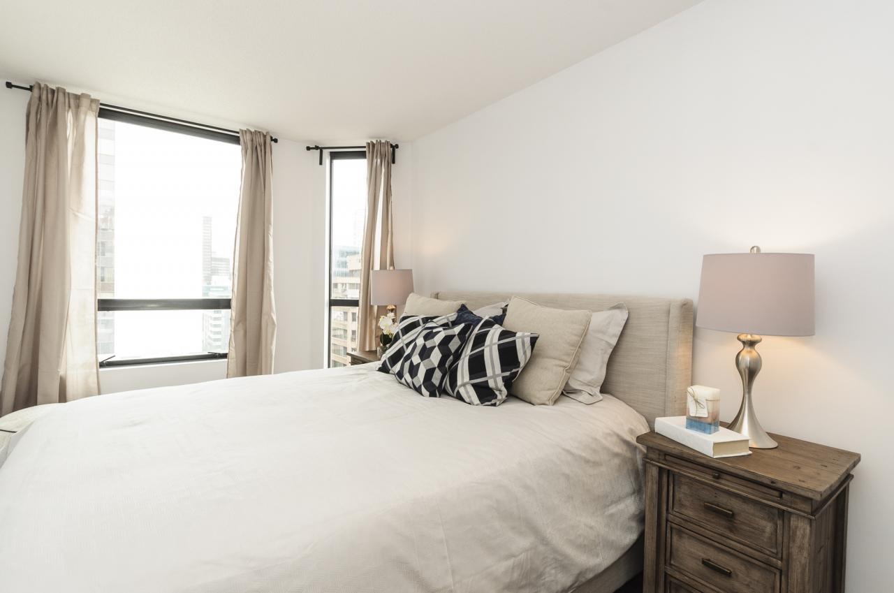 A & N Construction's latest renovation project at Imperial Tower! This amazing 2 bed/2 bath is perfectly laid out with 2 ensuite bathrooms, ample living space and large deck. This unit has been completely renovated including all new appliances, fully upgraded kitchen, bathrooms and flooring. Master bedroom has a walk-in closet or storage space. Unbelievable location in a well run building with a gym, amenity room and a Starbucks downstairs for your convenience! All staging is available for purchase seperate from purchase price. Move in ready or great for investment! Don't wait around as this will go fast! OPEN HOUSE FRIDAY 10-12AM and SATURDAY 2-4PM.