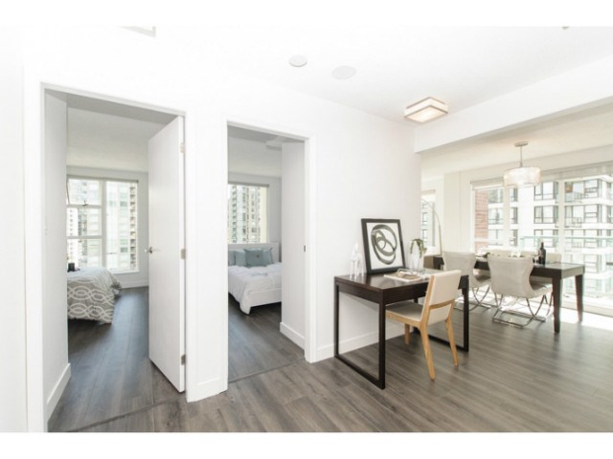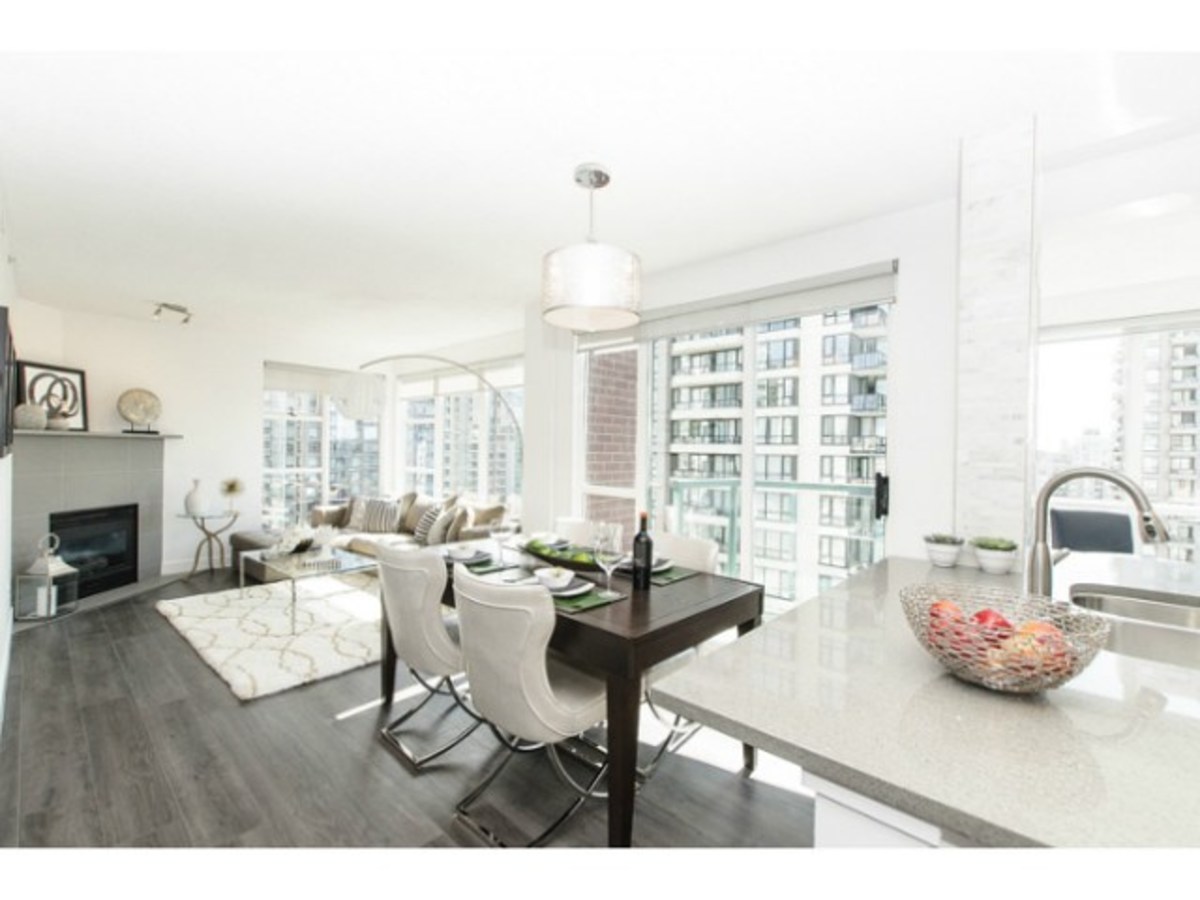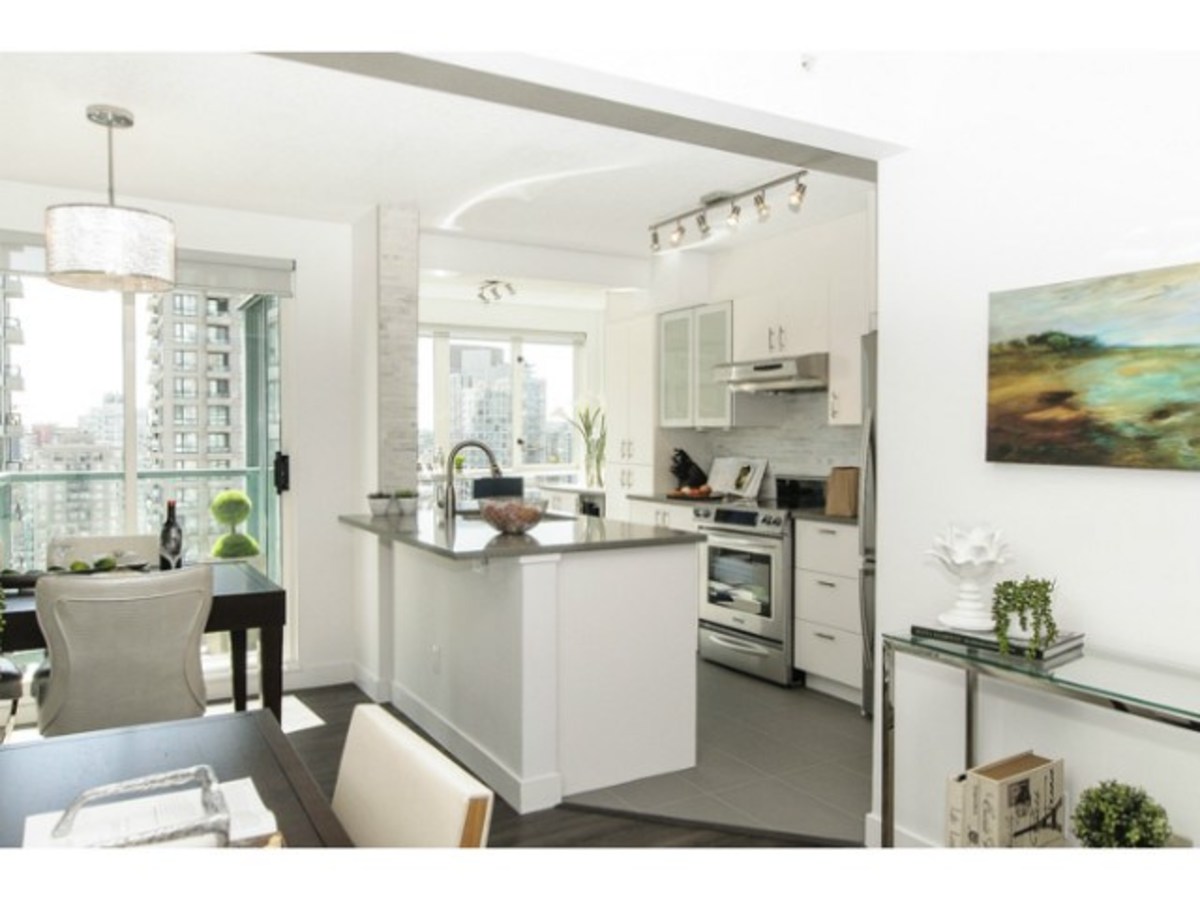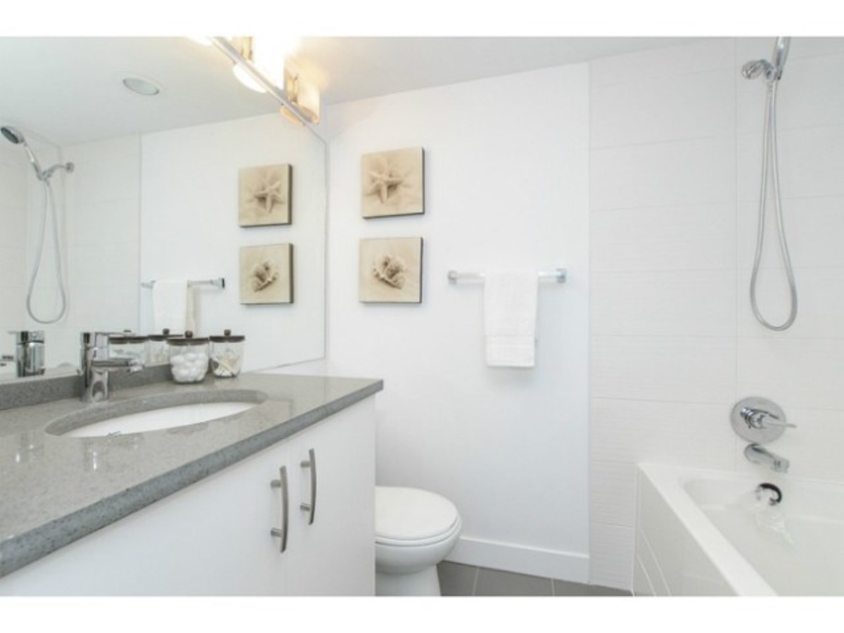 Fabulous 2 bedroom, 2 bathroom + solarium/den home at " the Pinnacle". The immaculate suite has been tastefully updated with quality materials and craftsmanship. This North East corner suite has views of the North Shore mountains and beautiful views of the city skyline. This open layout offers an open kitchen with plenty of cupboard space and a functional dining & living room. The building is known for its amenities which include a pool, hot tub, sauna, gym, suite and wonderful rec centre with pool table, full kitchen & guest suite all located in the building. Pets & rentals welcome. One parking and one external locker included.