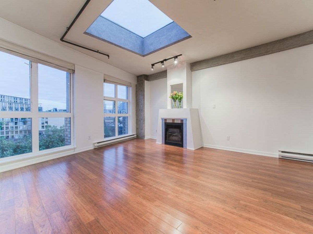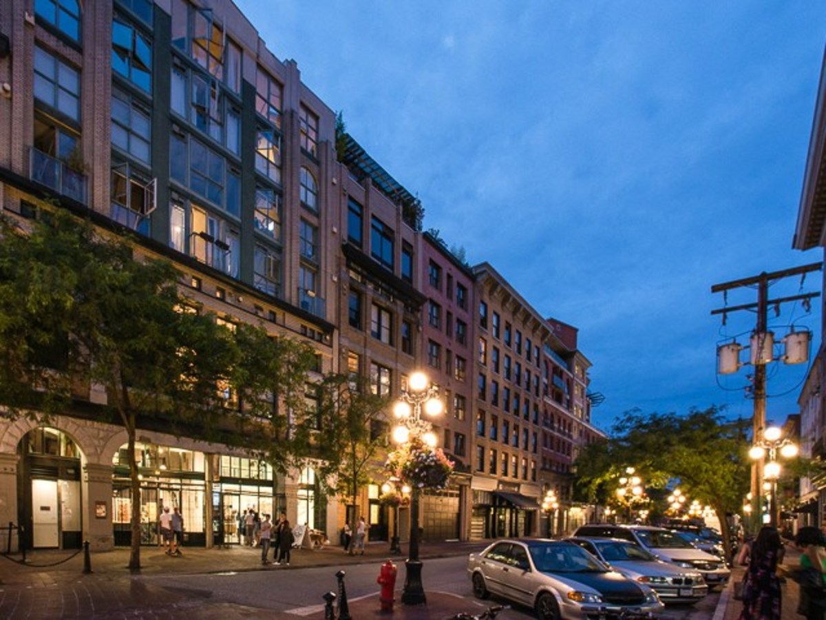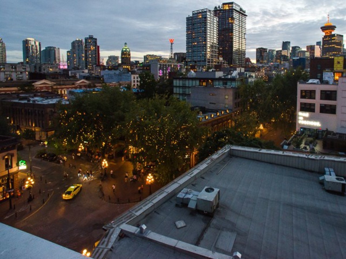 One-of-a-kind penthouse loft in arguably the most desirable location in Gastown. This unique city home offers over 700sqft of living space, in addition to a private rooftop deck that perches above the Gastown city lights with direct views over the Burrard Inlet, towards the North Shore Mountains. This southwest corner home offers an efficient floor plan with a galley style kitchen leading to a large living space, featuring soaring vaulted ceilings, expansive windows and a 4'x4' skylight. Separated sleeping area complete with ample storage. Some of the other unique features include exposed concrete walls, gas fireplace, insuite laundry and 1 secured underground parking spot. Both pets and rentals are permitted.