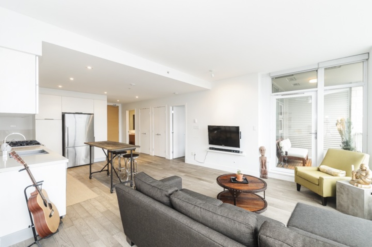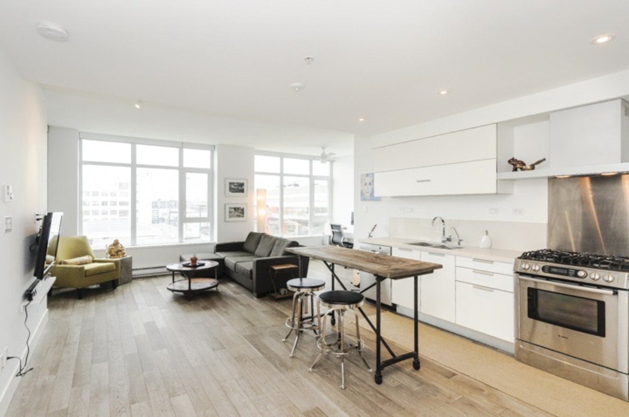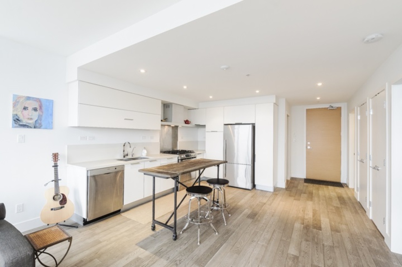 This stunning suite is located in Kitsilano's finest CONCRETE boutique building - First on First. Ideal West coast lifestyle. Kits beach, marina, Granville Island, 4th Ave shops and Downtown venues - all within 10 minutes walk. This large 1 bed/1bath residence offers 769 sq ft and has a simple yet elegant European interior design - clean lines, warm colour palette, oversized windows, overheight ceiling to maximize natural light flow. It offers top-of-the-line S/S appliances, imported Italian cabinets, quality stone kitchen countertops and upgraded engineered hardwood floor. Property includes 1 parking, in-suite storage and a storage locker. Pets & rentals allowed!