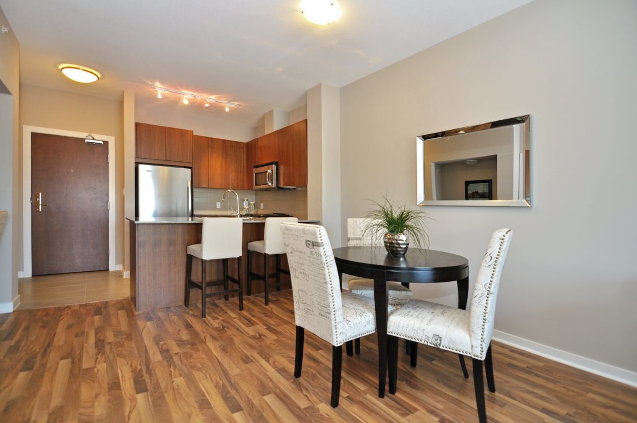 MACPHERSON WALK'S most sought after 1 bedroom - C Plan including 611 sq.ft! The 4th floor differs from the rest of the building, boasting 11 ft ceilings. This suite offers a very open concept floor plan perfect for your entertaining needs. The gourmet kitchen includes S/S Whirlpool appliances, granite countertops & walnut soft-close cabinets. This unique space also includes a tech-nook for all your office requirements, and a gas BBQ hook up on the balcony. Quiet location near Metrotown Centre, parks, community centre, schools, Royal Oak Station and much more. The building amenities include a guest room, fitness centre, party room, playground and a putting green! 1 parking / 1 storage locker included. Showings start Wednesday, March 16th 5pm - 7pm.