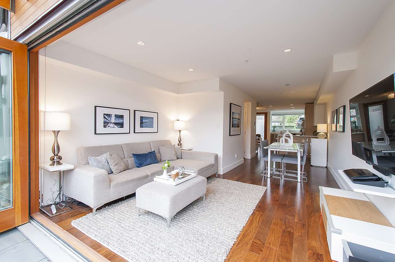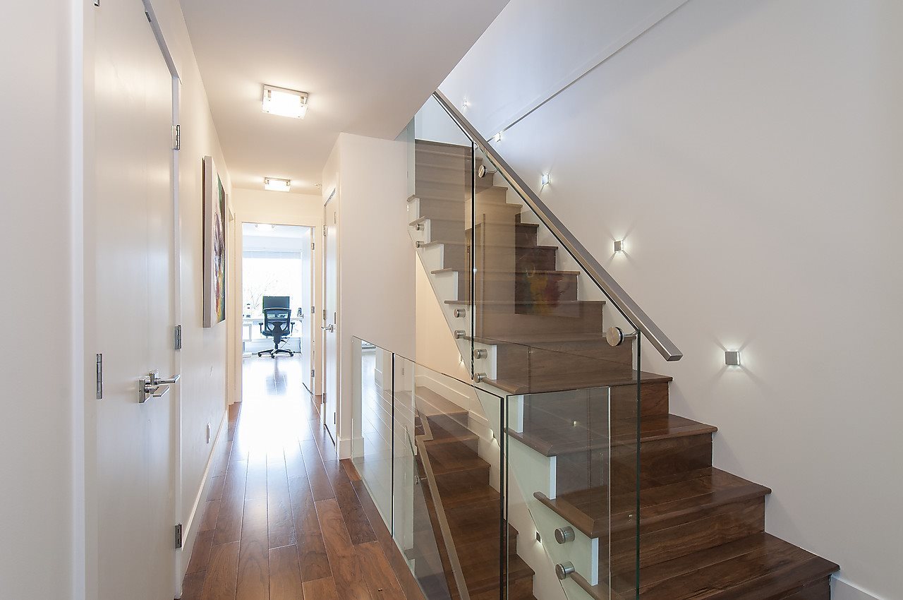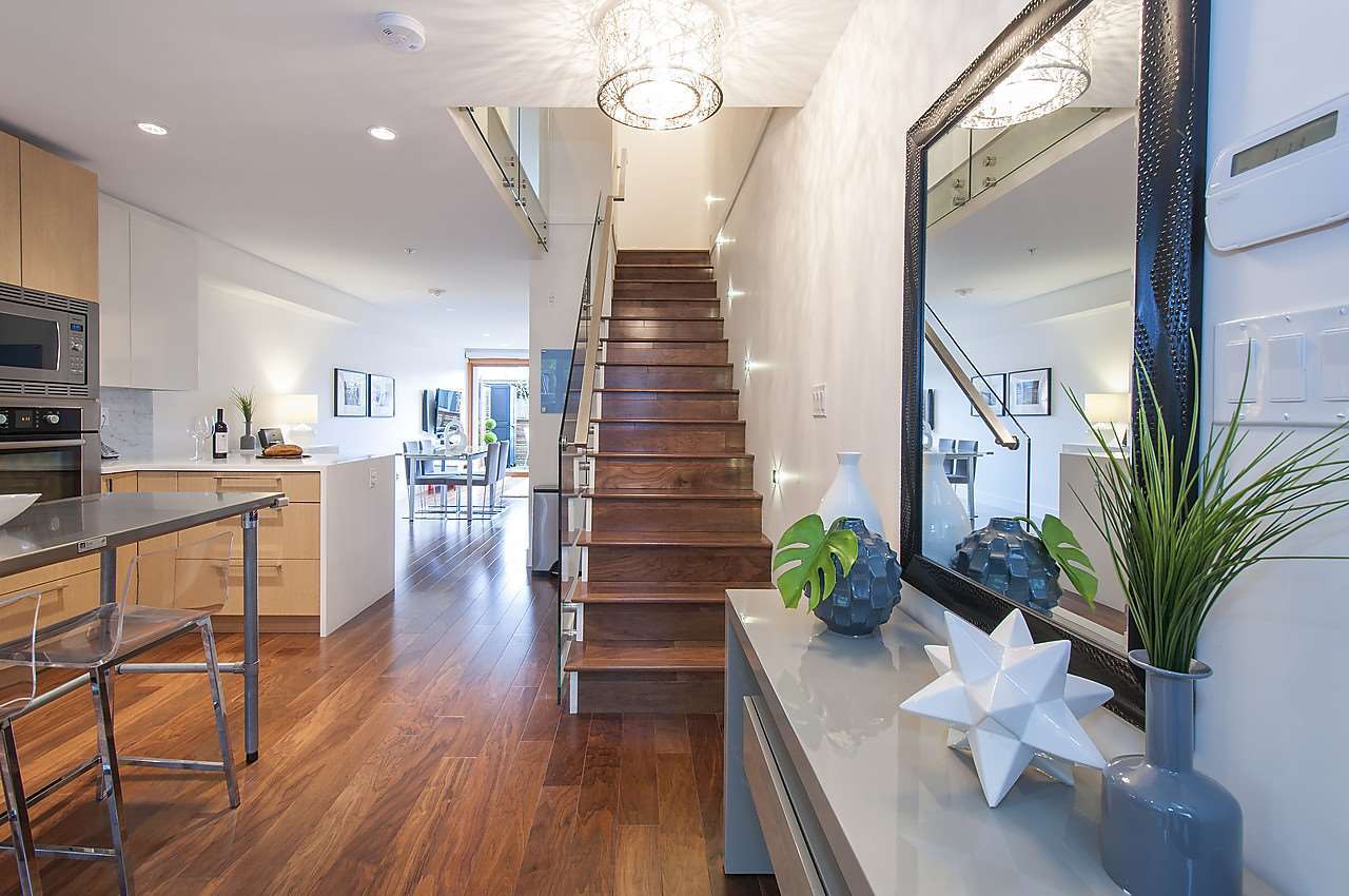 COVE GARDENS- first time being offered on the market, this elegant town home is located in the centre of prestigious Deep Cove! The home offers magnificent water views, radiant hot water heat, engineered hardwood flooring throughout, complete appliance package (Bosch), Kohler fixtures, closet organizers, quartz counters with marble backsplashes, glass railings, intercom & more. Comes complete with 2 parking & a storage locker. Just steps to the beach, restaurants & shops not to mention the myriad of recreational facilities at your door step. The renowned Baden Powell Trail, Kayaking, skiing, golf & more. Open April 23/24 2pm-4pm.