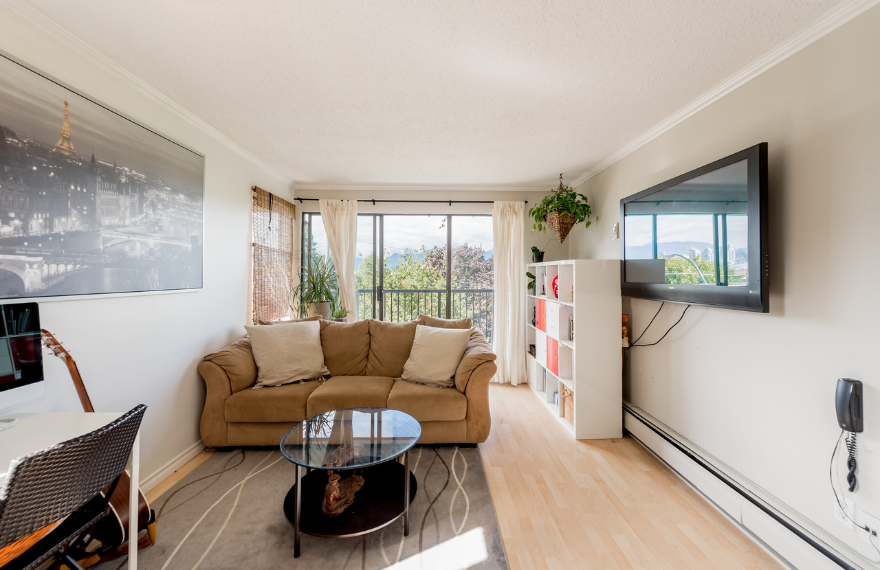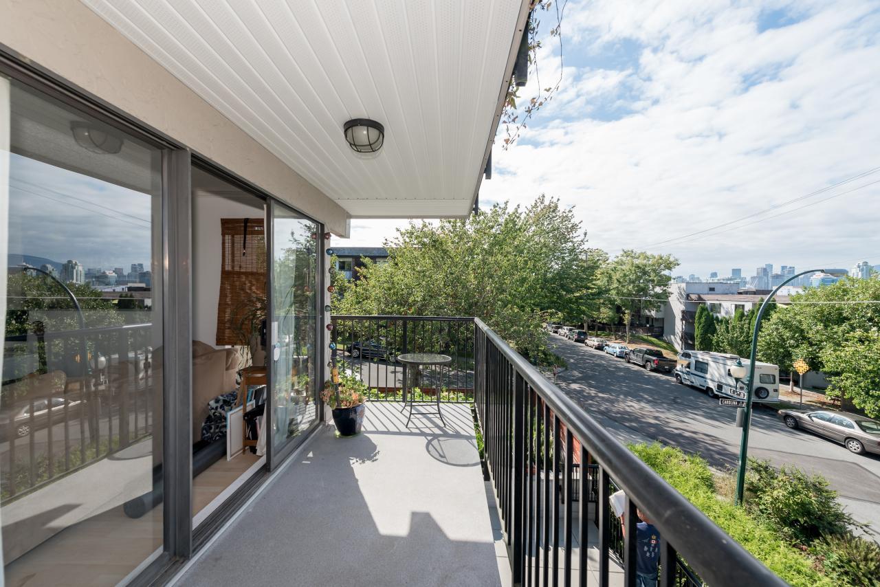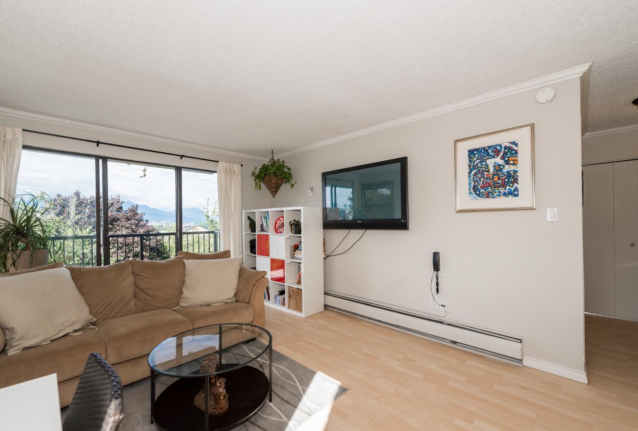 This great, north-west facing 1 bedroom + 1 bathroom unit offers expansive mountain and city views and features a wrap-around deck perfect for outdoor enjoyment. The updated kitchen and laminate flooring is highlighted through plenty of natural light, making the unit feel large, open and spacious. Conveniently located 5 minutes to downtown and a short walk to Main Street which offers some of Vancouver's trendiest cafes, restaurants and shops. Building recently updated with plumbing, boiler, roof, balconies and parking membrane. Shared laundry and 19+ building. Sorry, no rentals allowed. 2 pets allowed. This unit comes with parking spot and storage. OPEN HOUSE SAT/SUN 13 & 14 AUG 2-4PM.