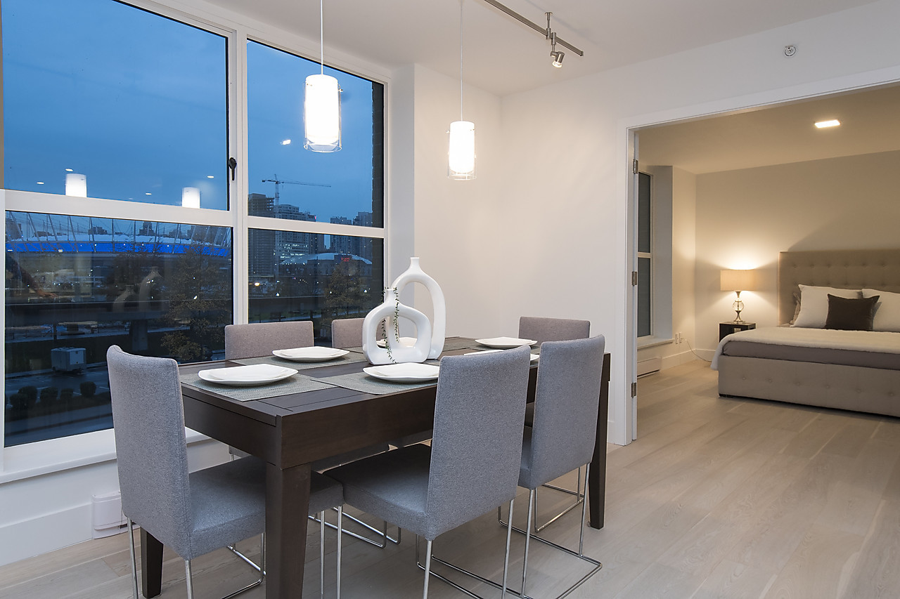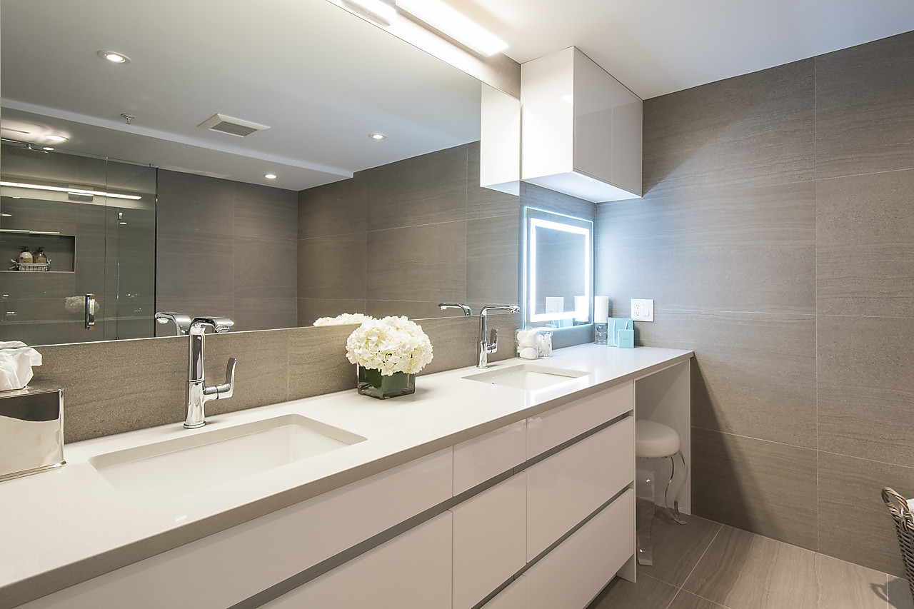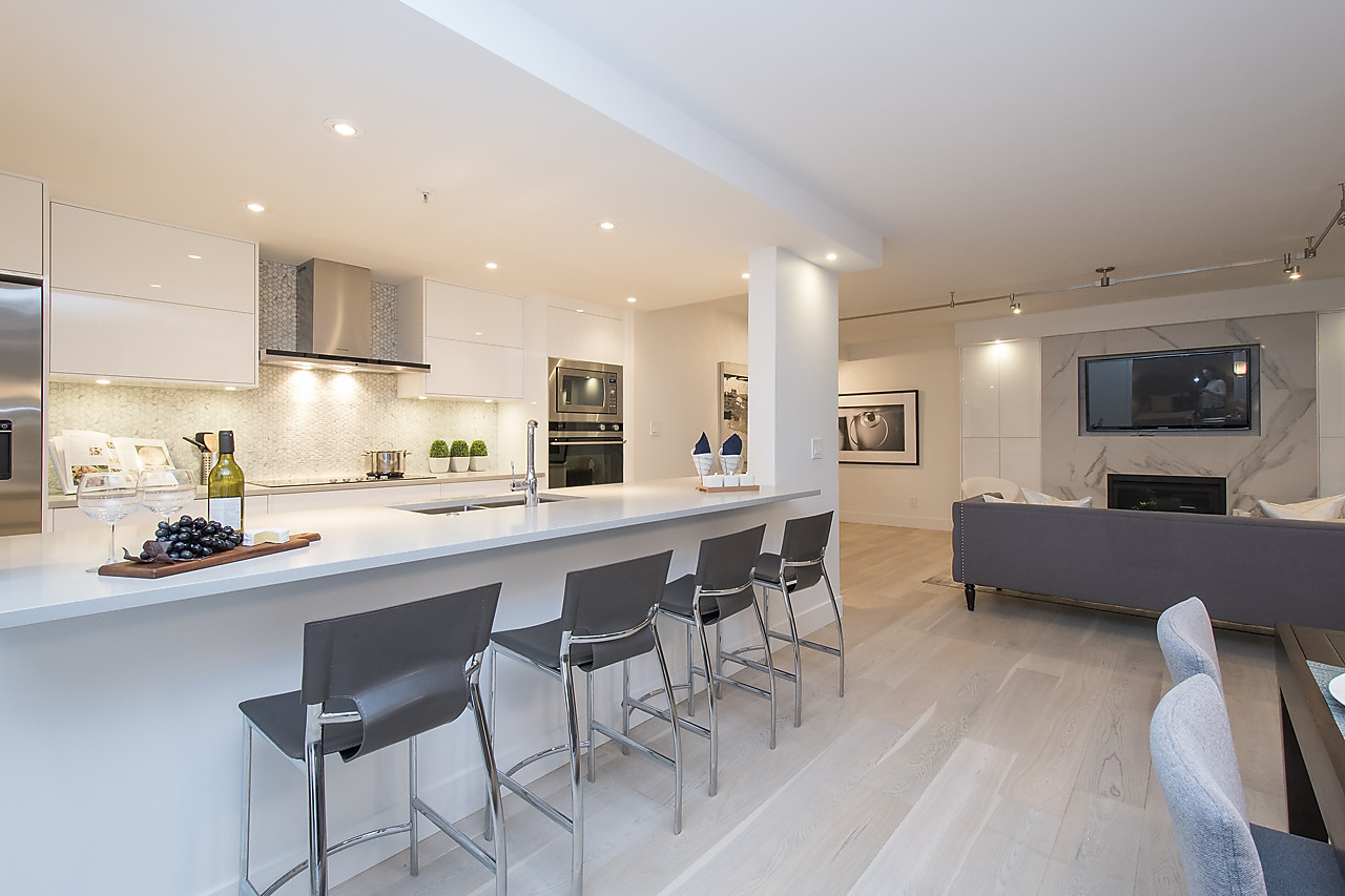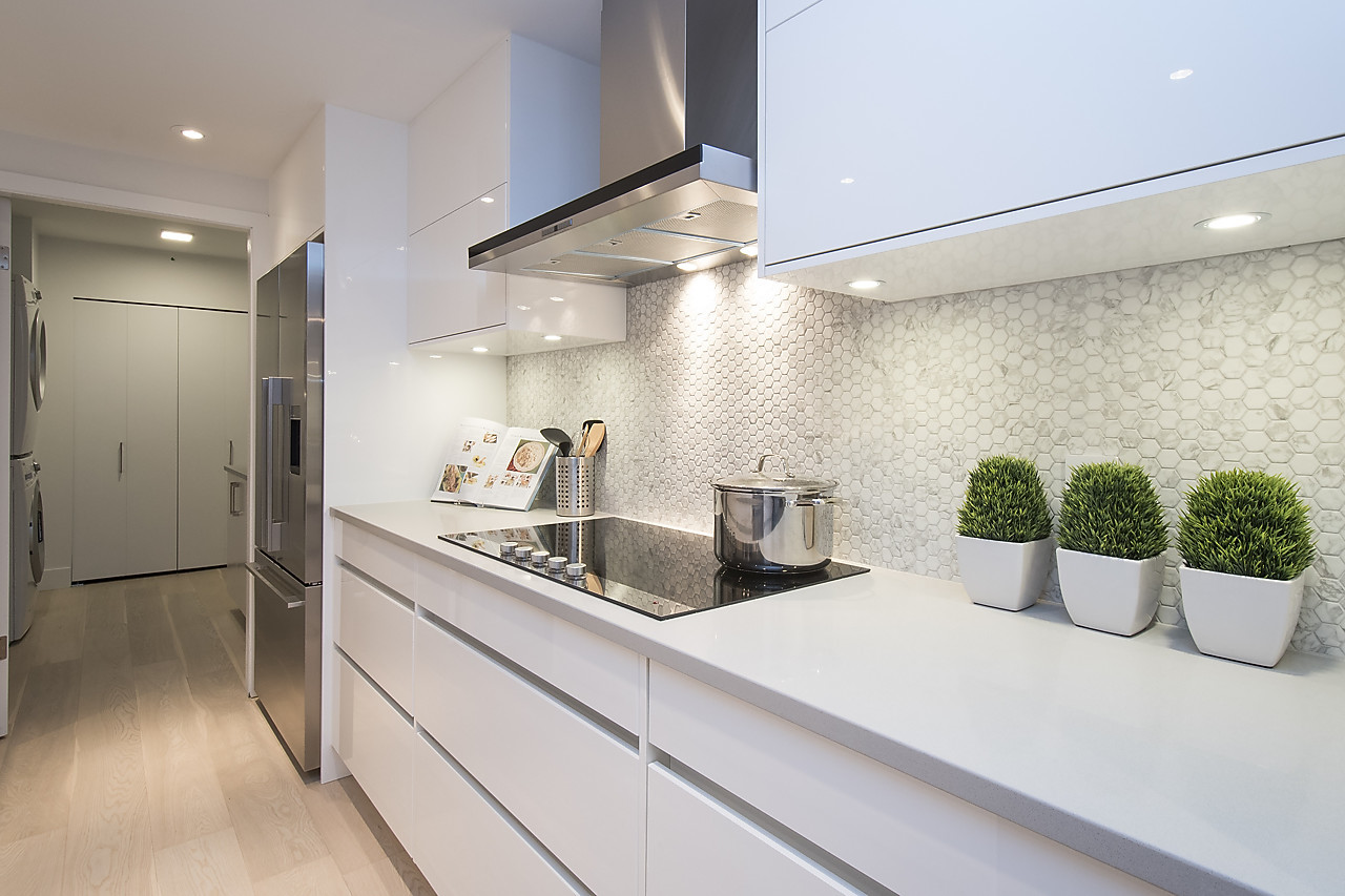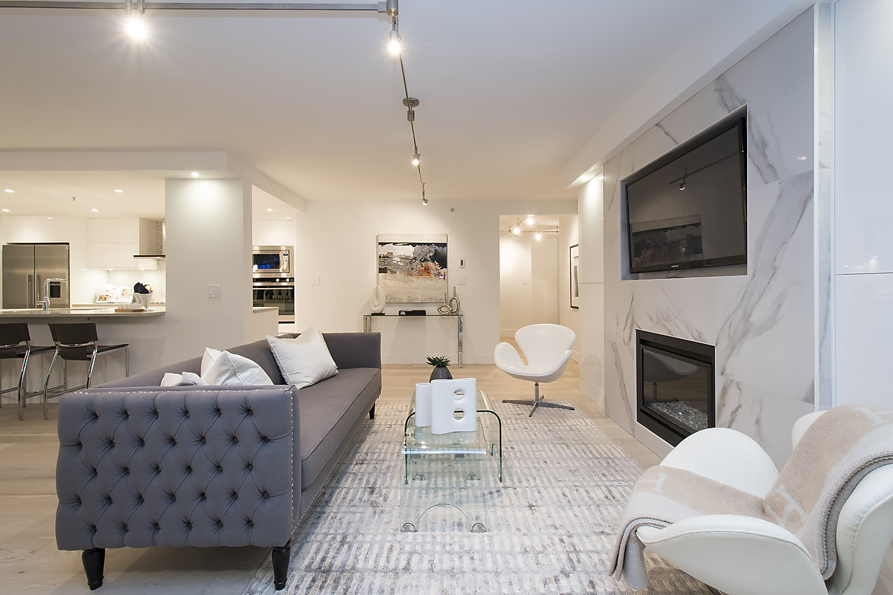 Citygate by Bosa now hosts a staggeringly beautiful 1,745 sqft completely renovated masterpiece. This home has been remodelled with over 180K worth of upgrades with the utmost attention to detail.The large master bedroom emits a luxury hotel feel with a spa-like ensuite fit with Italian porcelain tile, a glass shower and Hytec modern bathtub, as well as a custom lighted make-up vanity. The generous open plan kitchen boasts new countertops, soft close cabinetry and all new Fisher & Paykel appliances, including two dishwasher drawers and a 38 bottle wine cooler! You can enjoy sitting in the stunning living room with a new fireplace fit with white marble tiles and built-in white lacquer shelving, all overlooking the breathtaking view of Science World and False Creek ocean views.