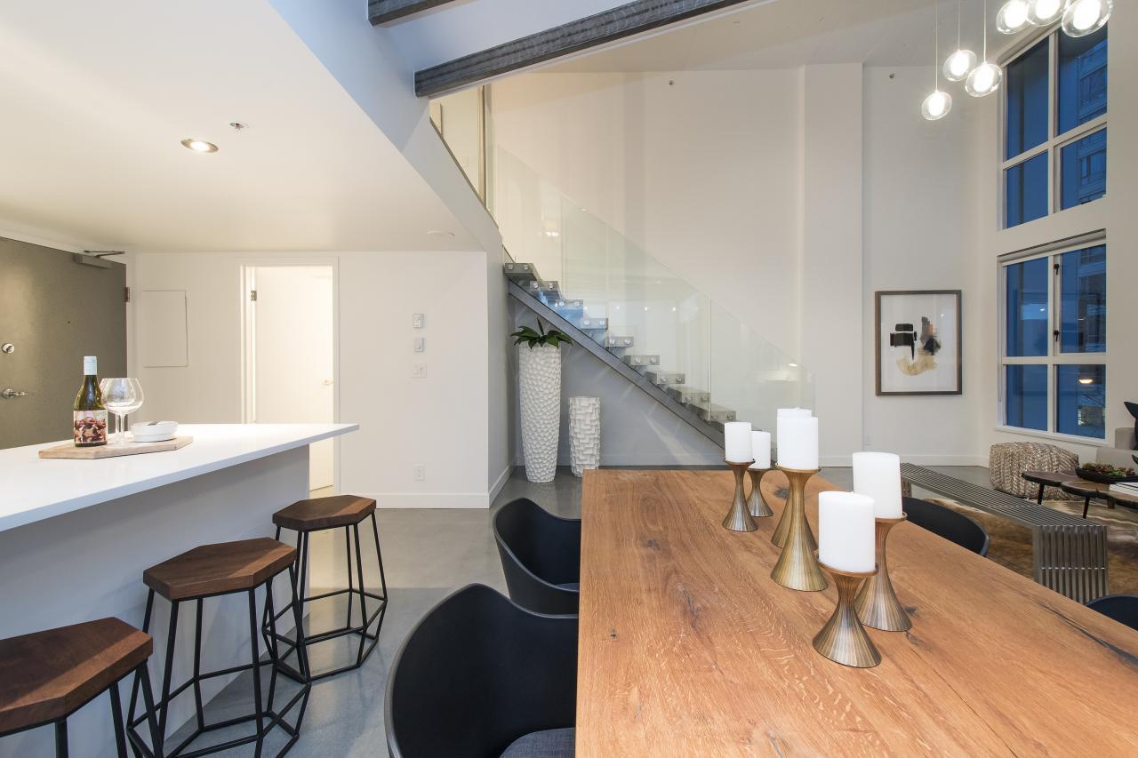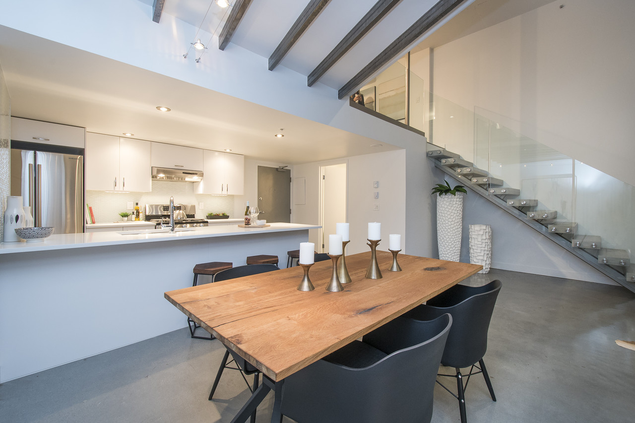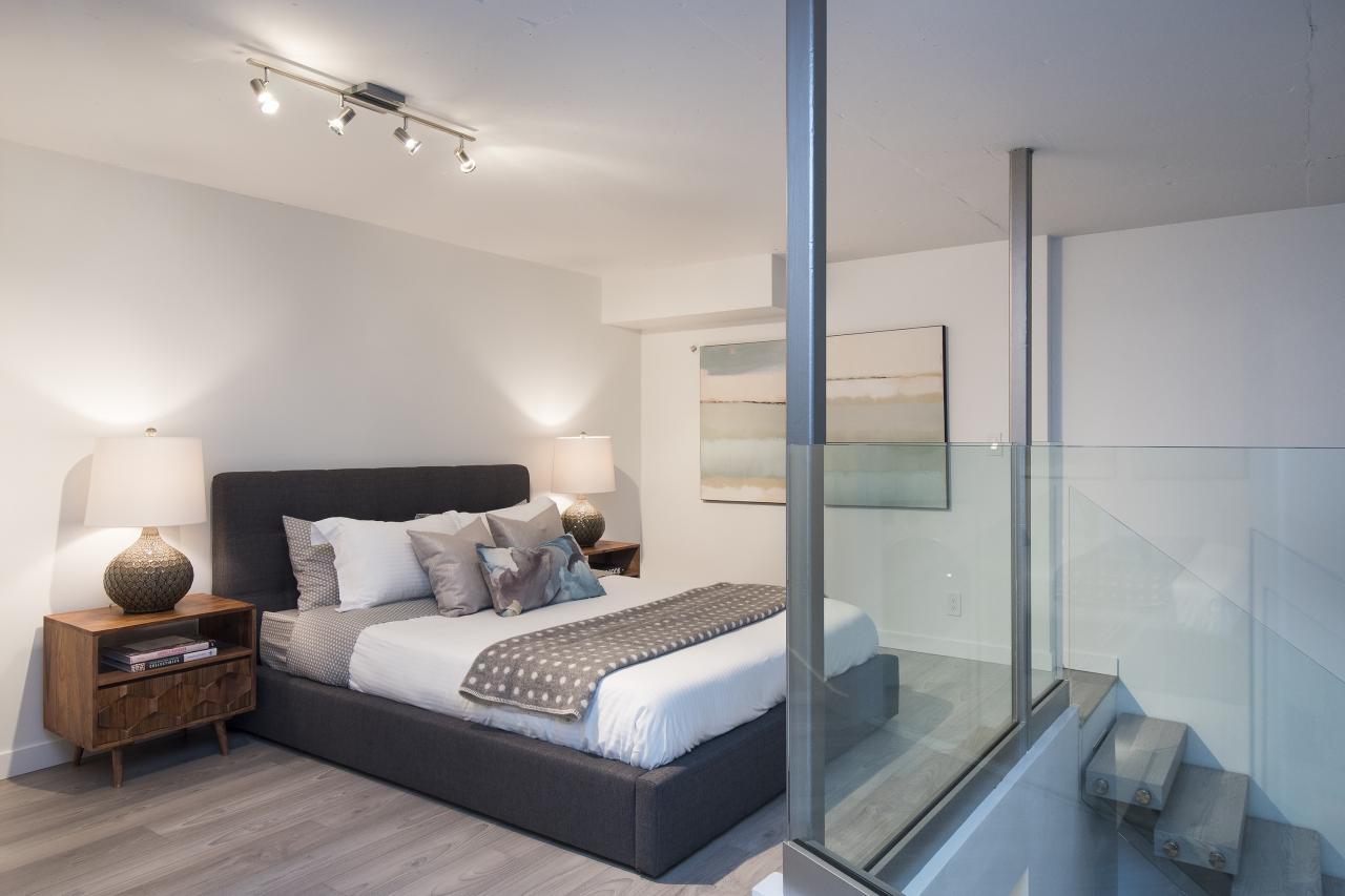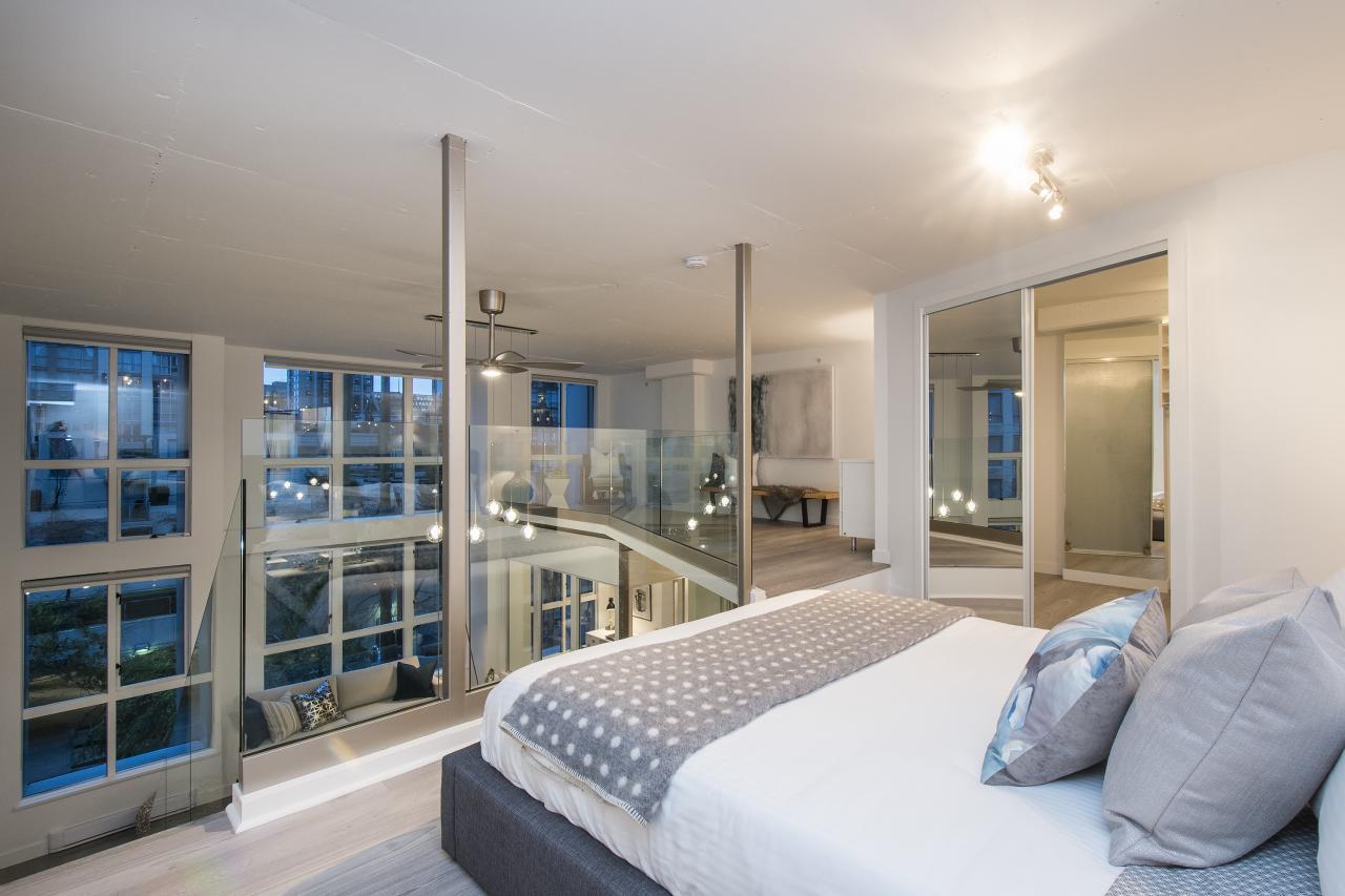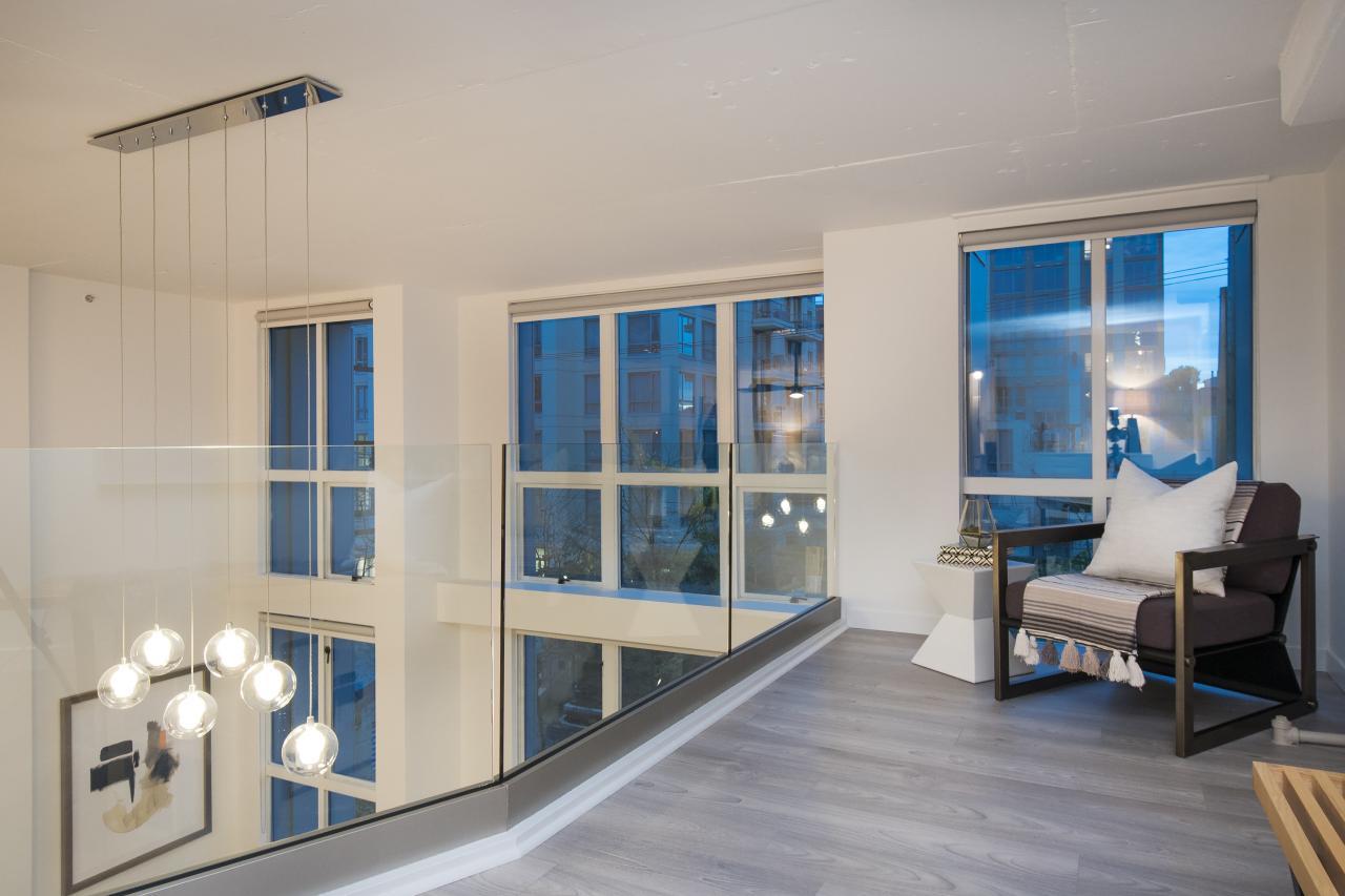This is a truly one of the most incredible 1 bedroom + den lofts "The Space" has to offer after undergoing 80K in renovations by AEWill Construction Inc., and is one of the most extensive/high end renovations in the building. With entirely new kitchen & appliances, bathroom, flooring, glass railings etc., this loft is IDEAL to live in or purchase for investment. The ceilings reach a soaring 16 ft. with floor to ceiling windows all completed with newly installed light grey roll down shades. The main floor offers a polished concrete floor true to loft style, large living and dining area & den with windows for potential home office or extra storage. Huge master & walk in closet! Pets & Rental allowed. OPEN SAT/SUN NOV 19/20, 2-4PM.