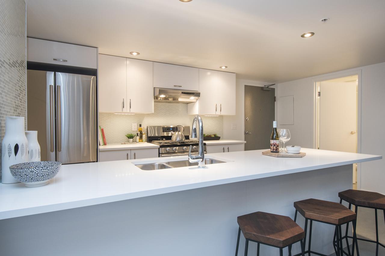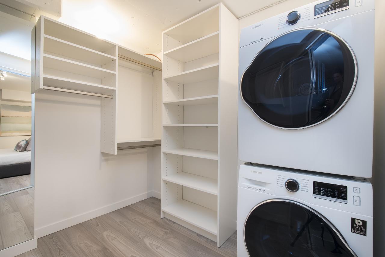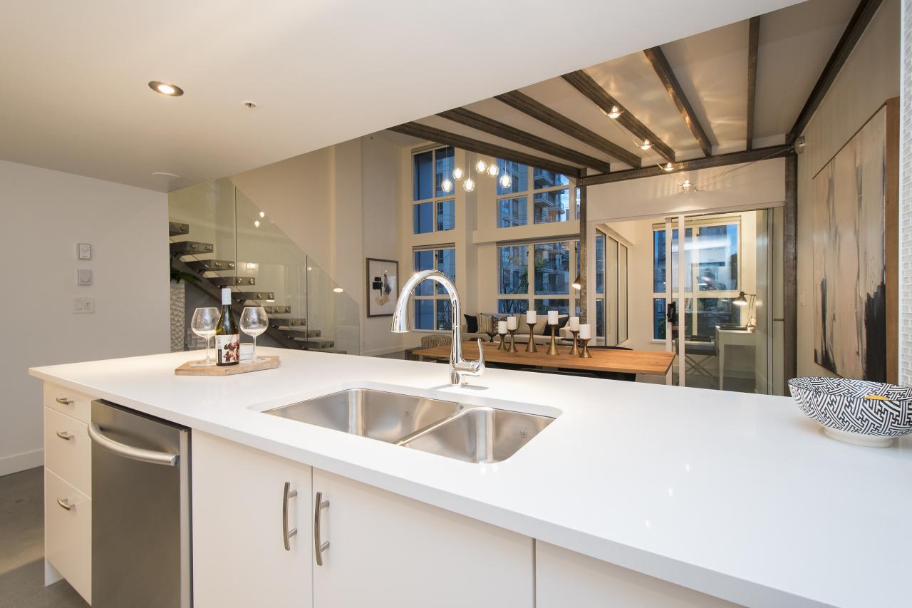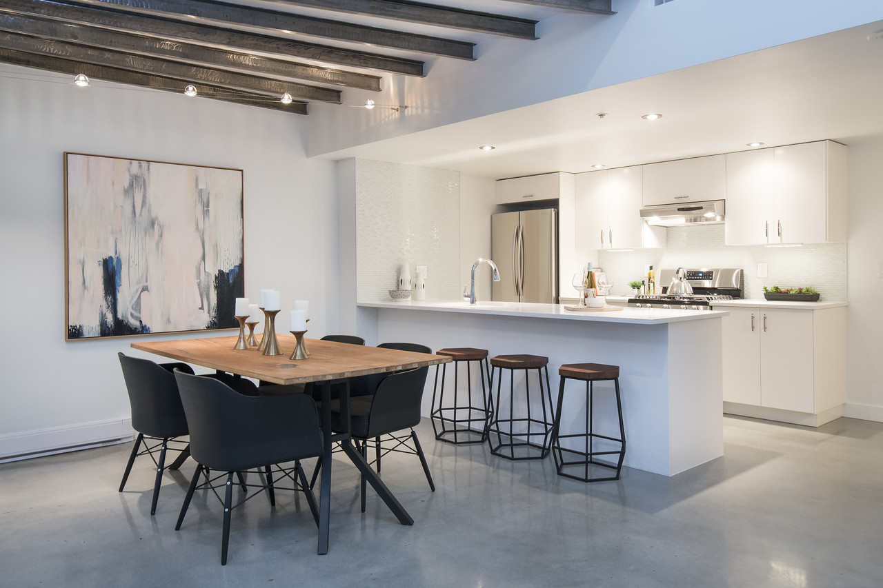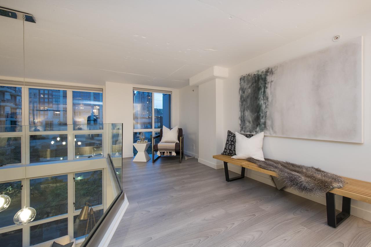 This is a truly one of the most incredible 1 bedroom + den lofts "The Space" has to offer after undergoing 80K in renovations by AEWill Construction Inc., and is one of the most extensive/high end renovations in the building. With entirely new kitchen & appliances, bathroom, flooring, glass railings etc., this loft is IDEAL to live in or purchase for investment. The ceilings reach a soaring 16 ft. with floor to ceiling windows all completed with newly installed light grey roll down shades. The main floor offers a polished concrete floor true to loft style, large living and dining area & den with windows for potential home office or extra storage. Huge master & walk in closet! Pets & Rental allowed. OPEN SAT/SUN NOV 19/20, 2-4PM.