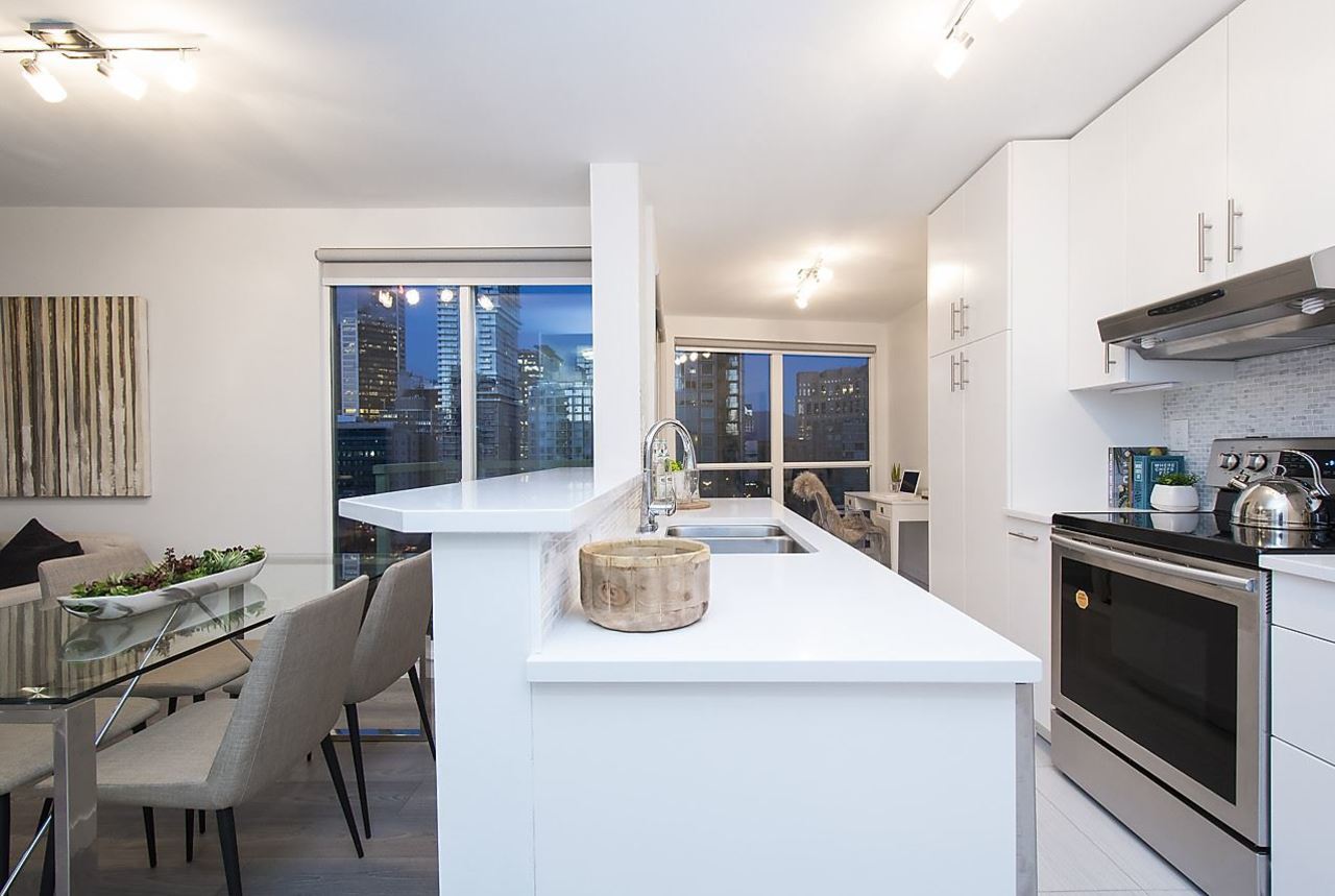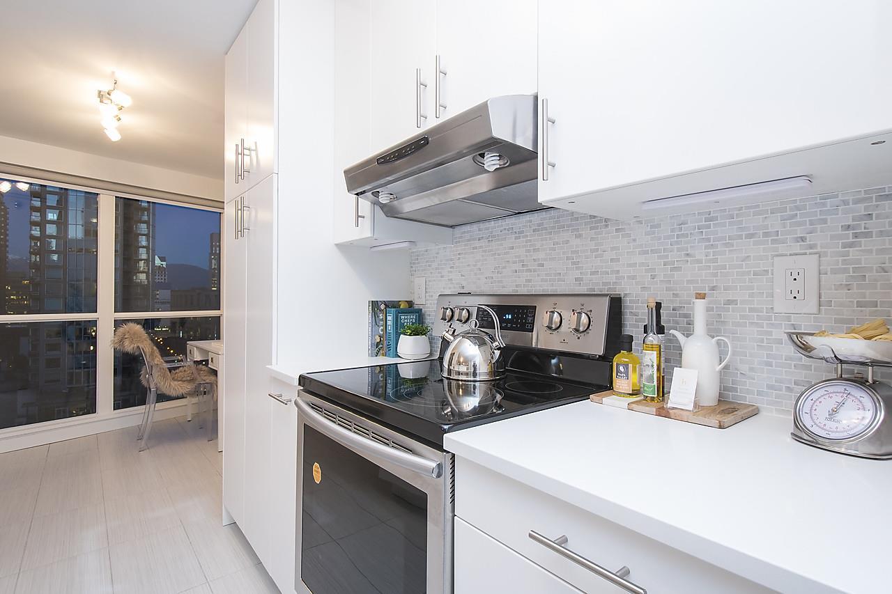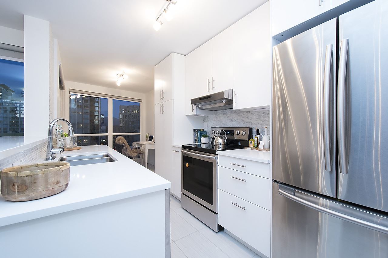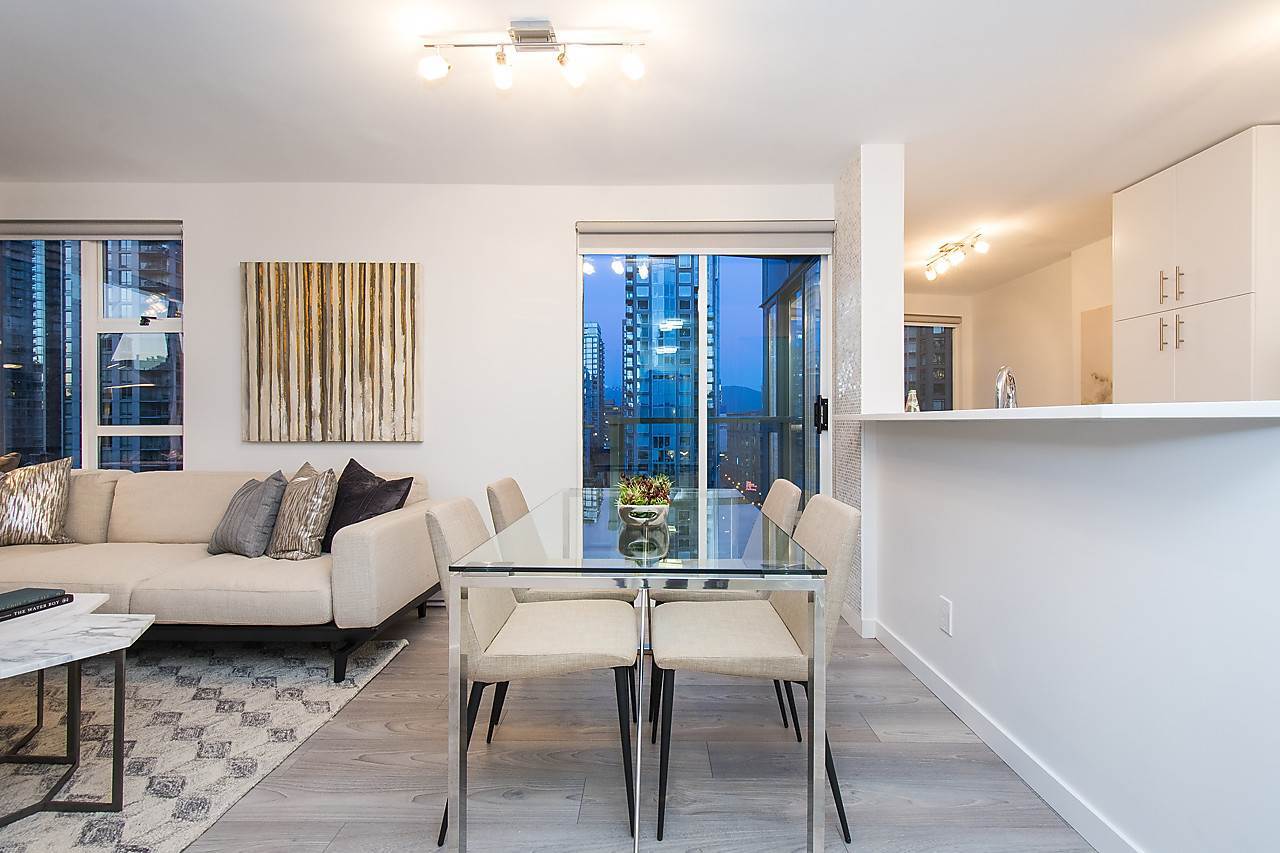 This gorgeous newly renovated unit has everything you could need in the heart of Yaletown! 2 bed, 1 bath + 1 large den all completely renovated by AEWill Construction Inc. with all new floors, window coverings, kitchen w/ appliances, bathroom & tiling throughout! Amazing city and mountain views from this 20th floor unit in The Pinnacle, which offers a host of amenities such as 24 hour concierge, gym, indoor pool, hot tub, steam room/sauna, gardens, library and guest suites! Great for investment or personal use! 1 parking & 1 storage, Pets & rentals allowed. Open House Jan 28/29 2-4PM. Vacant and easy to show.