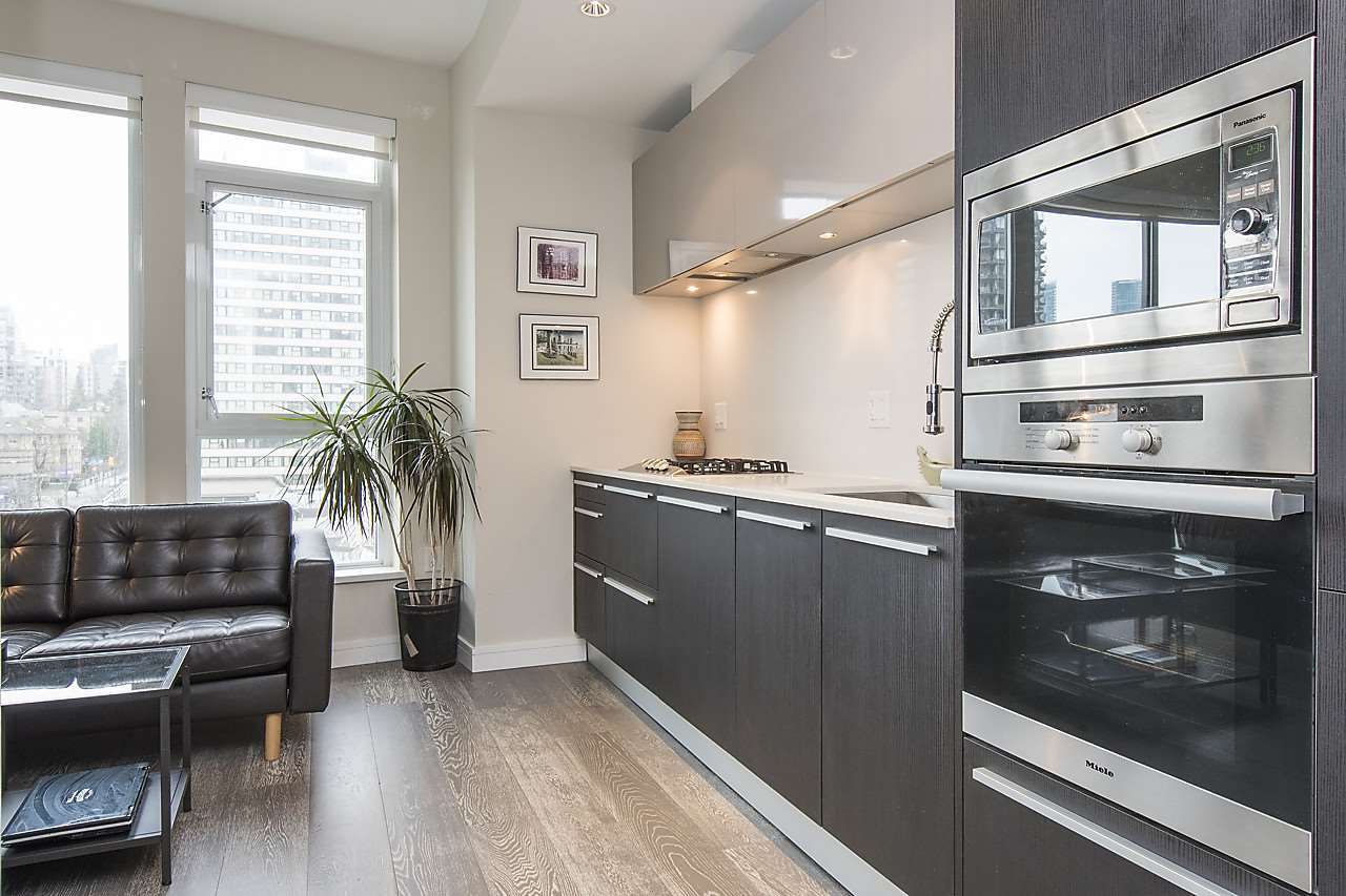 Well designed studio at the reputable ALEXANDRA building. This functional suite has a large den perfect for an office or WIC and boasts premium hardwood floors, European cabinetry, Miele/Sub Zero appliances & quartz countertops - there is no spared expense! Take time to yourself in Club Alexandra which includes fitness facilities & outdoor gardens, or entertain guests in the private lounge to watch the fireworks! This LEED Gold building is located in the original seaside neighbourhood, just blocks away from the beaches of the English Bay waterfront & lush greenery of Stanley park. Don't miss your opportunity to own this STUNNING pied-a-terre or investment property. 1 parking/1 storage locker included. Rentals & Pets welcome.