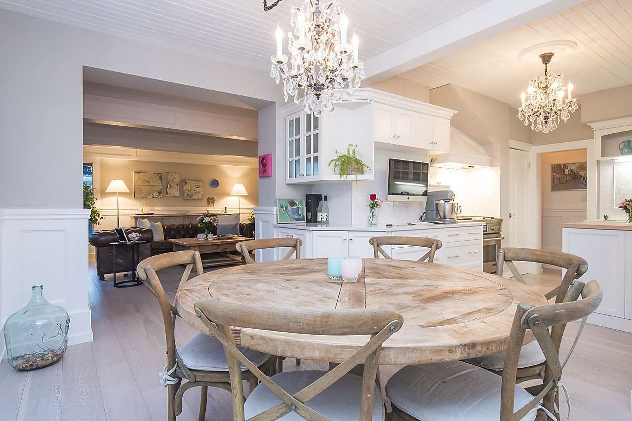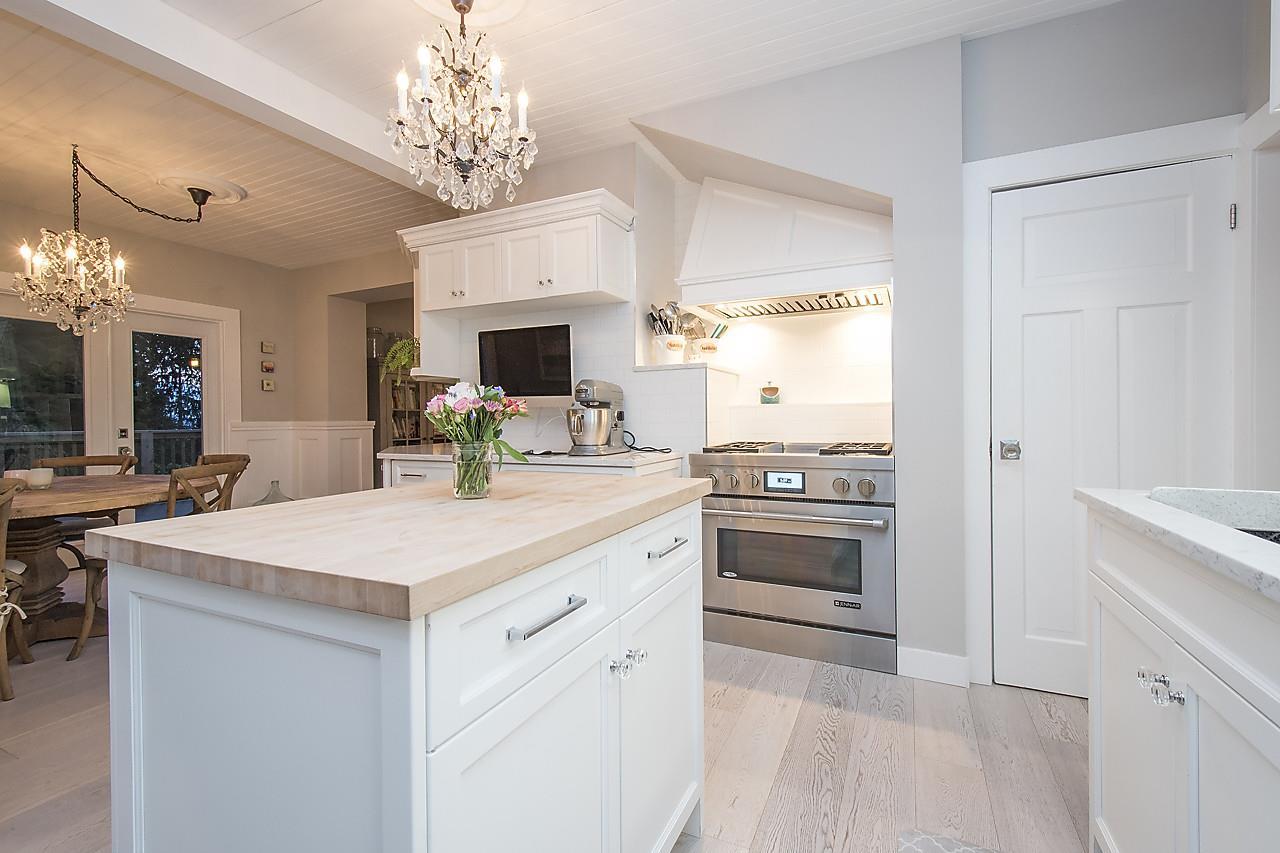 This beautiful character home has been tastefully renovated to bear a bright and beautiful new family home! Originally a farm house built in 1922, it is now transformed into a West Coast contemporary home in the desirable neighbourhood of Dundarave. Exterior has been completely resurfaced with light wood shingles, complete with a new patio & extensive landscaping sitting on 8,133 sqft lot w/ a HUGE flat back yard. This south facing home has an open plan layout on each floor with new bathrooms, flooring, lighting & vaulted ceilings. Each room has custom built in closets, w/ the master closet island hosting a hidden lift TV cabinet. Truly perfect for entertaining in the kitchen leading out to gorgeous dining room overlooking the massive bright deck & partial ocean views. Move in or rebuild!
