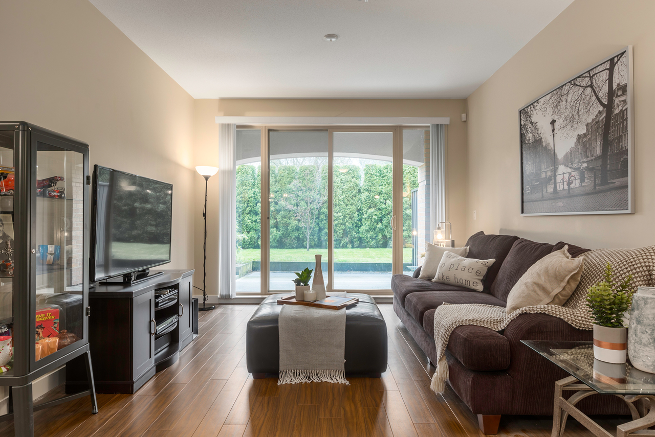 This rare ground-level suite boasts the feeling of spaciousness with 9' ceilings, a well laid-out open floor plan and 150 sq. ft. patio that opens to a private green space (great for pet owners!). The TEMPO building is in an ideal central location, close to shops, restaurants, UFV, the hospital and the new McCallum Junction shopping centre. Rentals and pets allowed with restrictions (1 pet). Includes in-suites laundry with storage space and upgraded stainless steel kitchen appliances. 1 parking and 1 storage locker included.