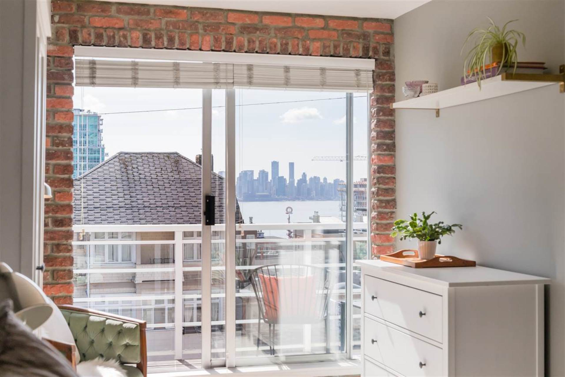 Welcome to the Sausalito! This stunning south facing 1 bed & den has gorgeous water views from the moment you open the front door! Features include gas range, engineered hardwood floors, moveable island & unique real brick accent walls. In perfect condition, this bright & sunny home has been freshly painted, new carpets in bedroom & den, new LED lighting, and has newly painted white cabinets - all within the last 30 days! With a powder room and a den large enough to be a bedroom - this home is perfect for a young couple or downsizers. Everything you need is steps away - there is nothing to do but move in and enjoy the Lower Lonsdale lifestyle! 1 parking, storage locker, and pets allowed - 2 cats & 1 dog OR 2 dogs & 1 cat. Open House Sat April 13th, 2-4pm and Sun April 14th, 12-2pm