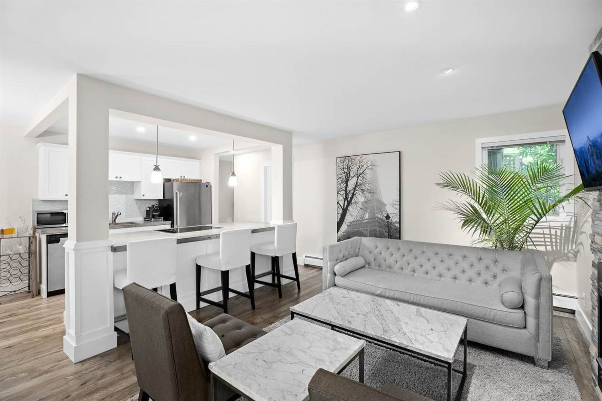 Stunning Kits Beach condo with a huge PRIVATE YARD! This renovated 910 sqft south east corner home has 2 bedrooms & 1 large bathroom. The suite has been recently renovated & offers a functional open plan with S/S appliances, concrete counter tops, in-suite laundry & huge walk-in glass surround shower. Wonderful indoor/outdoor flow perfect for entertaining with the living room opening to an unbelievable 500 sqft private south facing patio & brand new artificial grass yard. PERFECT for pet owners & families! 2 parking spots & 1 large storage locker included, pets/rentals welcome. Maintenance fees include heat, hot water & gas. Prime 1st & Cypress location means you are STEPS from Kits Beach, shopping, fabulous restaurants & quaint cafes!