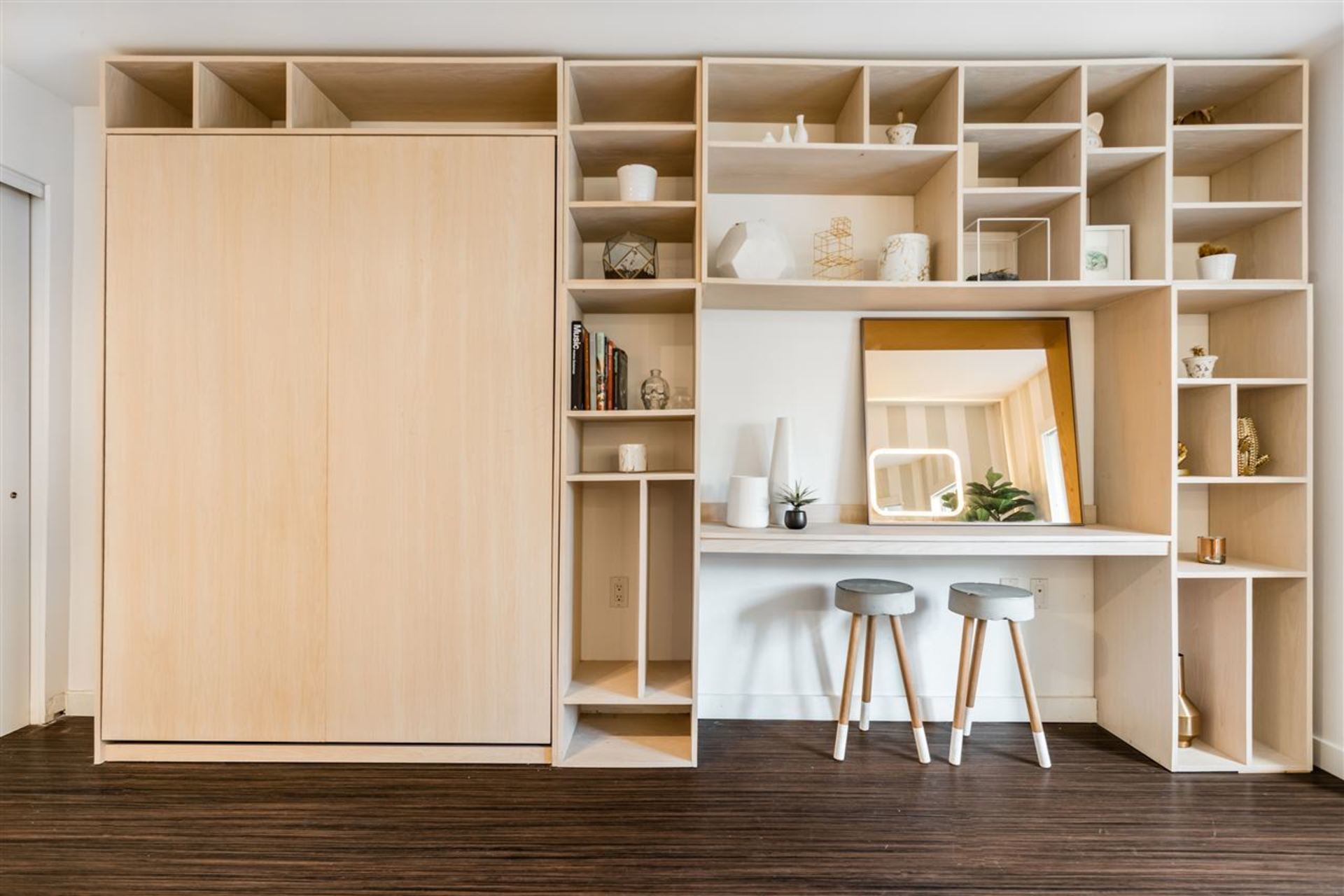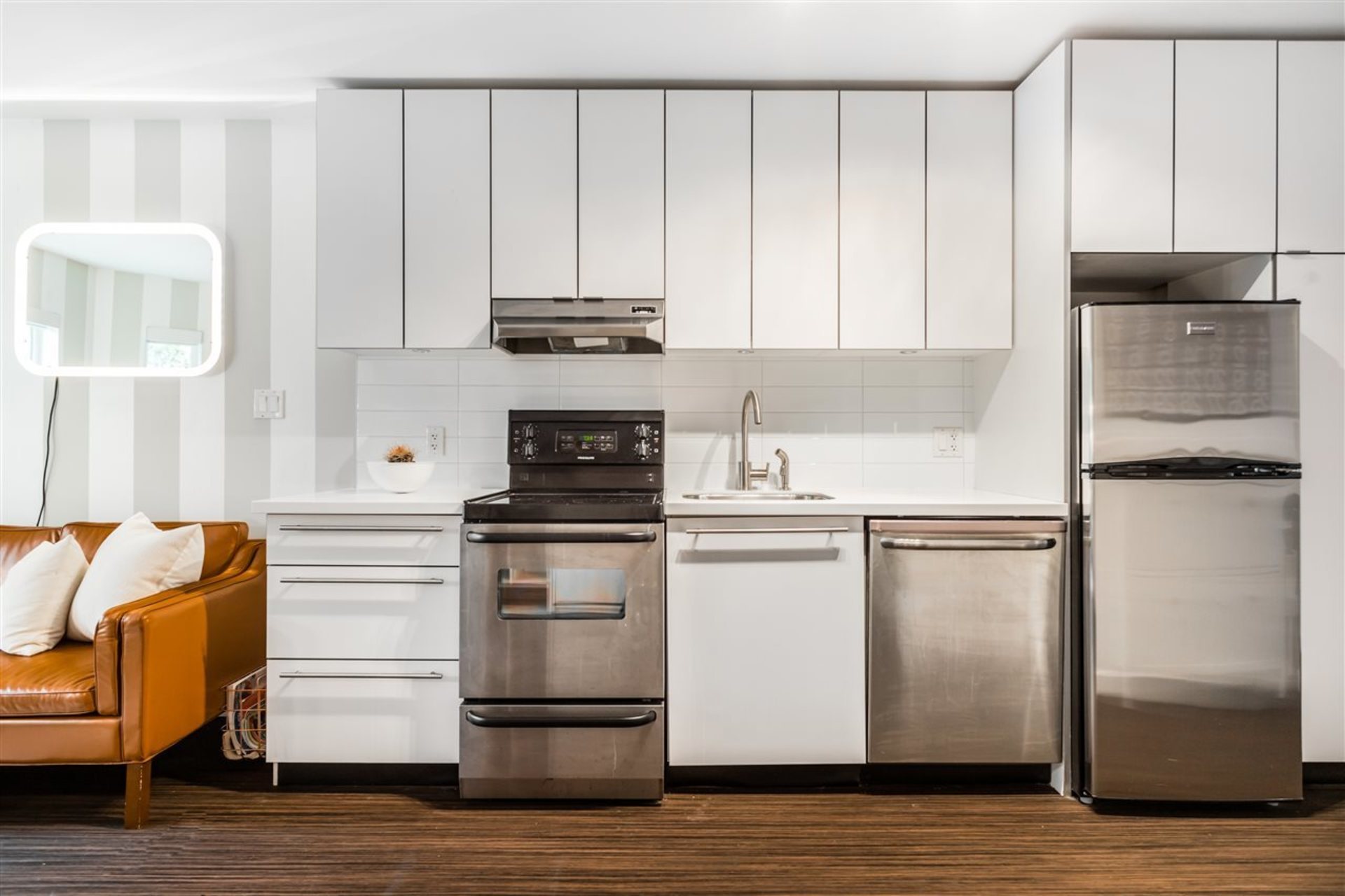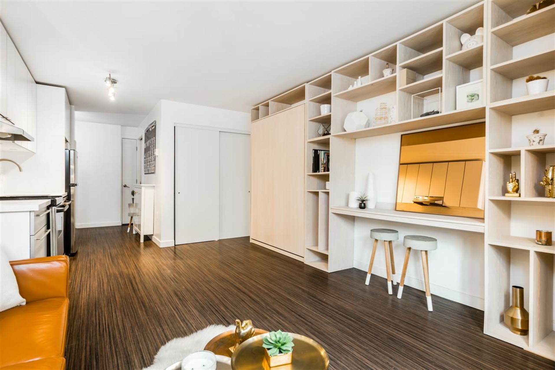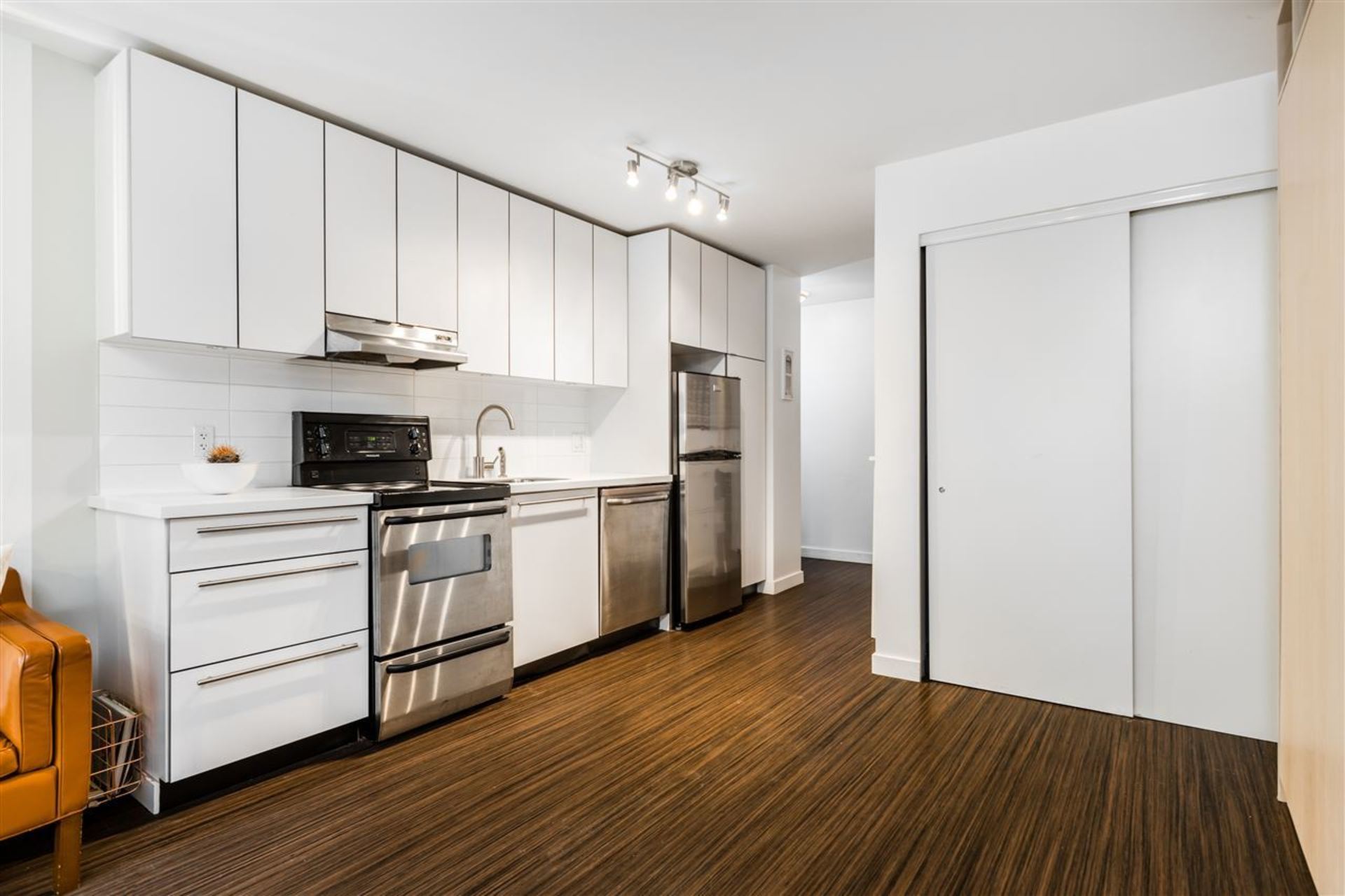 First time home buyer and investor alert! This fantastic studio at '21 Doors' in the heart of Gastown is a no brainer for creating revenue or getting into the market. Completely modernized in 2011 y Salient Group, this open plan offers easy living with a Murphy bed for best use of space and custom cabinetry throughout. With ample storage within the suite there is an added bonus of a separate locker on the main floor of the building, as well as in-suite laundry for your convenience. A short walk away from Waterfront Station and other rapid transport, as well as the most trendy an sought after restaurants, coffee shops and shopping the city has to offer.