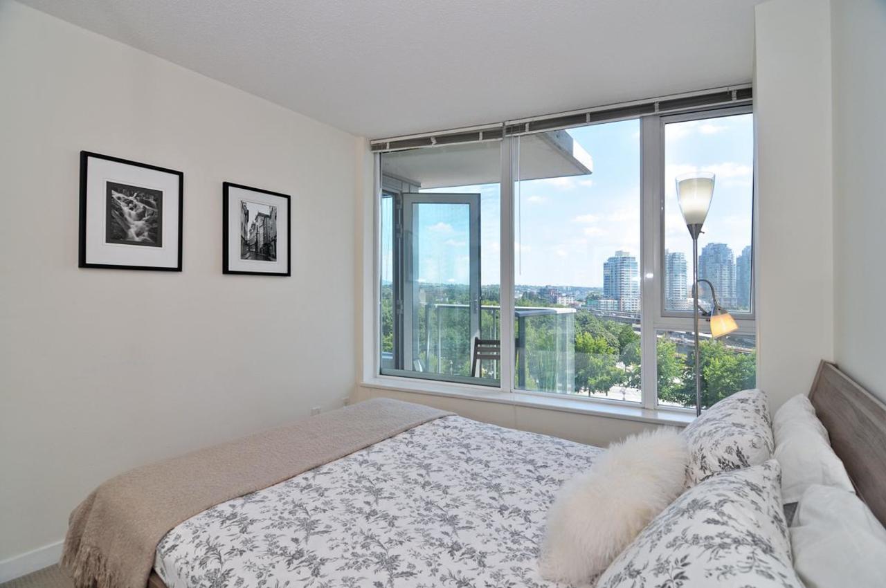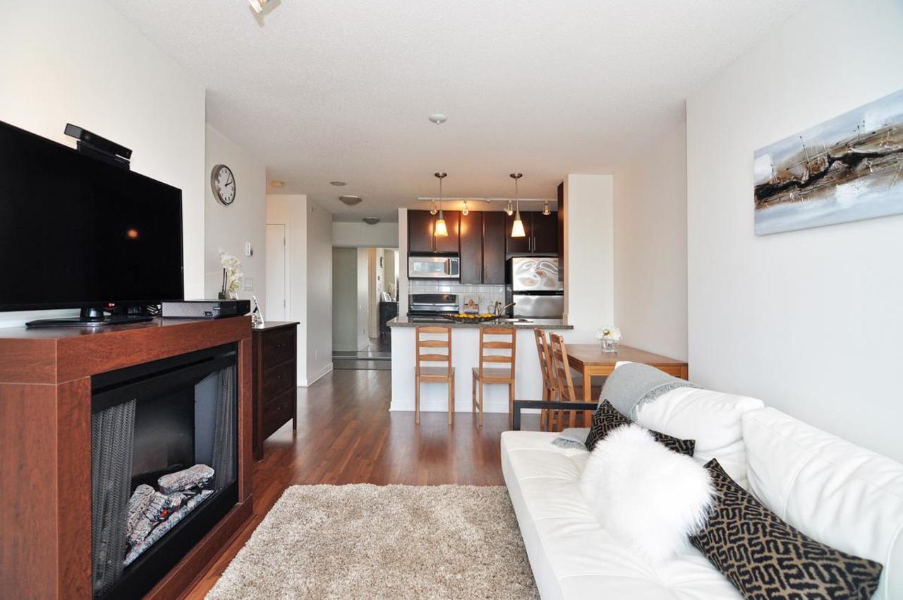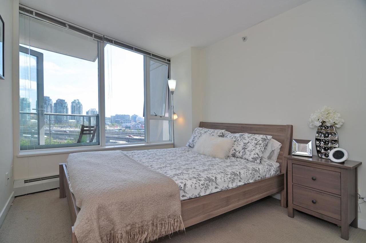 FIRENZE TOWER TWO by Henderson Development- a beautiful 1 bed/1 bath & den located in the heart of downtown. This bright South facing unit has sweeping views of False Creek and features an efficient, functional floor plan thatincludes an open galley style kitchen with granite counter tops and stainless appliances. The tower hosts a wide range of amenities including full indoor lap pool & hot tub, fitness centre, theatre room, sauna, underground parking & a bike room! Convenient Crosstown location, steps to the Sky-train (Stadium Station), Seawall, Costco, T&T Supermarket and International Village. 1 parking and 1 bike storage included. Pets and rentals are welcomed!