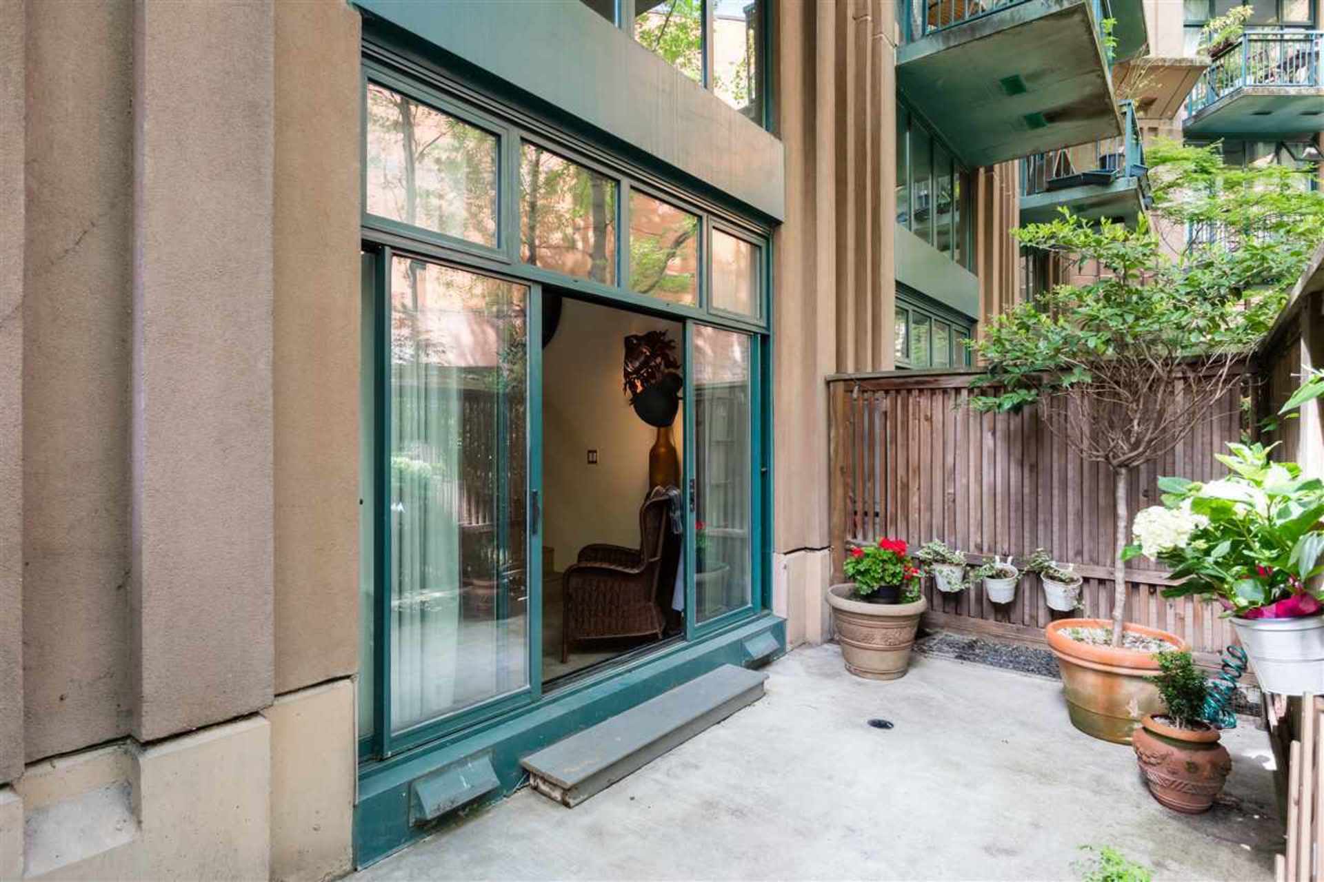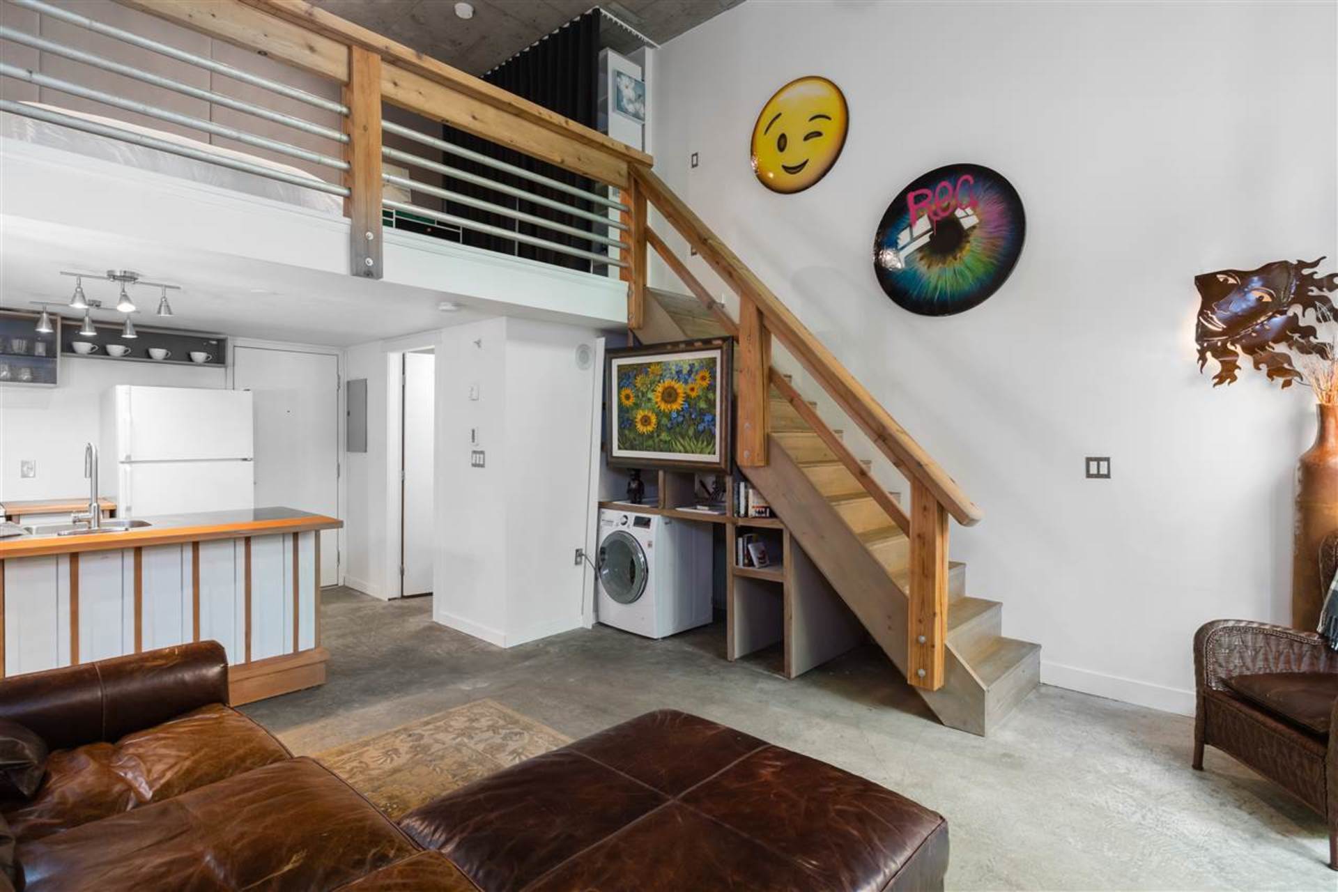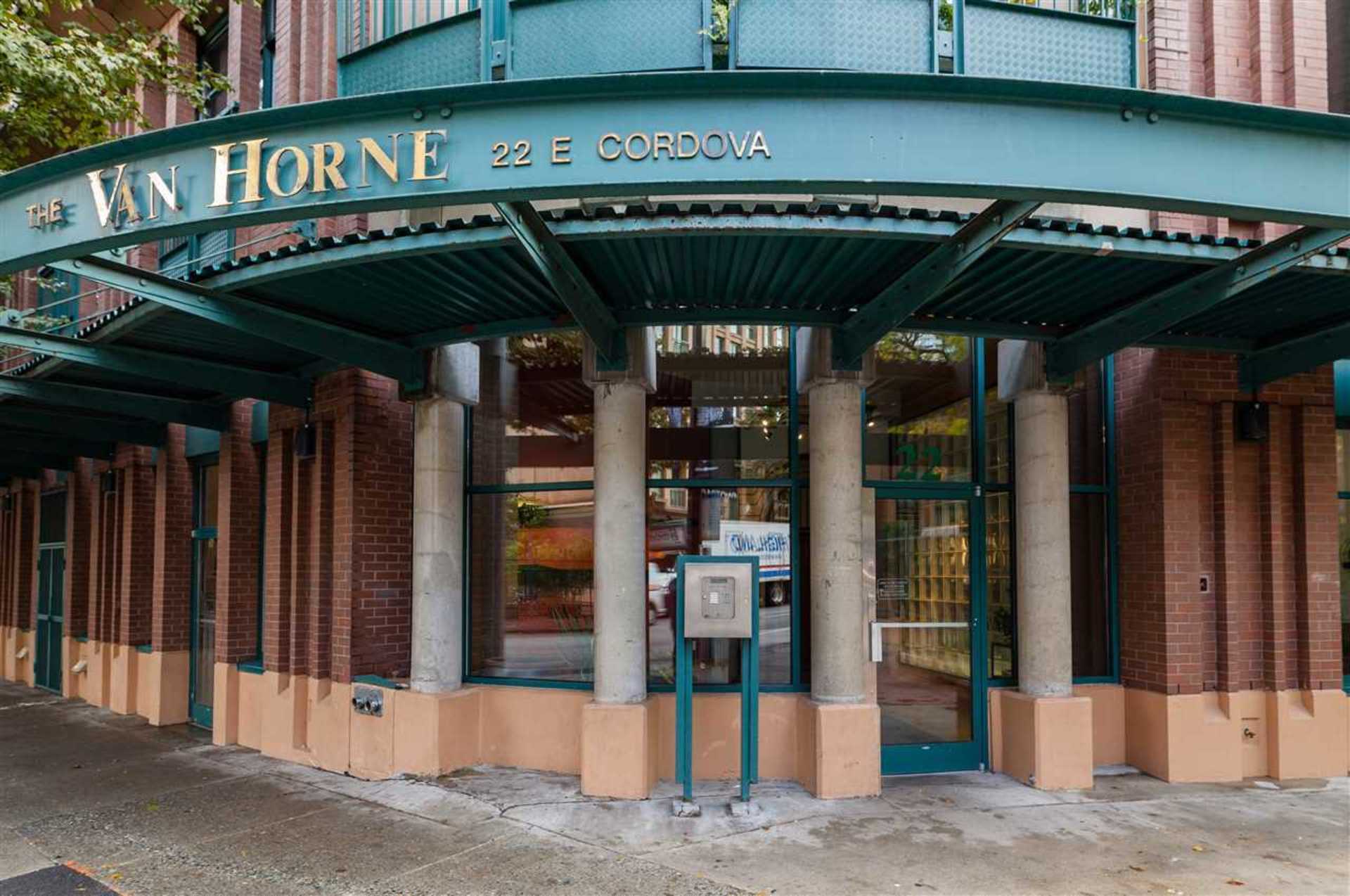 Welcome to the 'Van Horne', an ultra cool loft building in the heart of historic Gastown! This bright open plan loft hosts soaring 16ft ceilings & oversized windows which open onto a SE facing private patio surrounded by lush greenery. Your patio leads to a tranquil gated courtyard - full of beautiful trees. Truly an oasis in the city with no access to the public. Features include - unique concrete flooring, secured underground parking, bike storage, visitor parking & in suite laundry - all luxuries in Gastown for incredible value! A fantastic place to live or purchase for investment. Pets & Rentals allowed. Steps from rapid transport, charming cafe's, fitness studios, boutiques the endless restaurants that Gastown has to offer! Easy to show by private appointment!