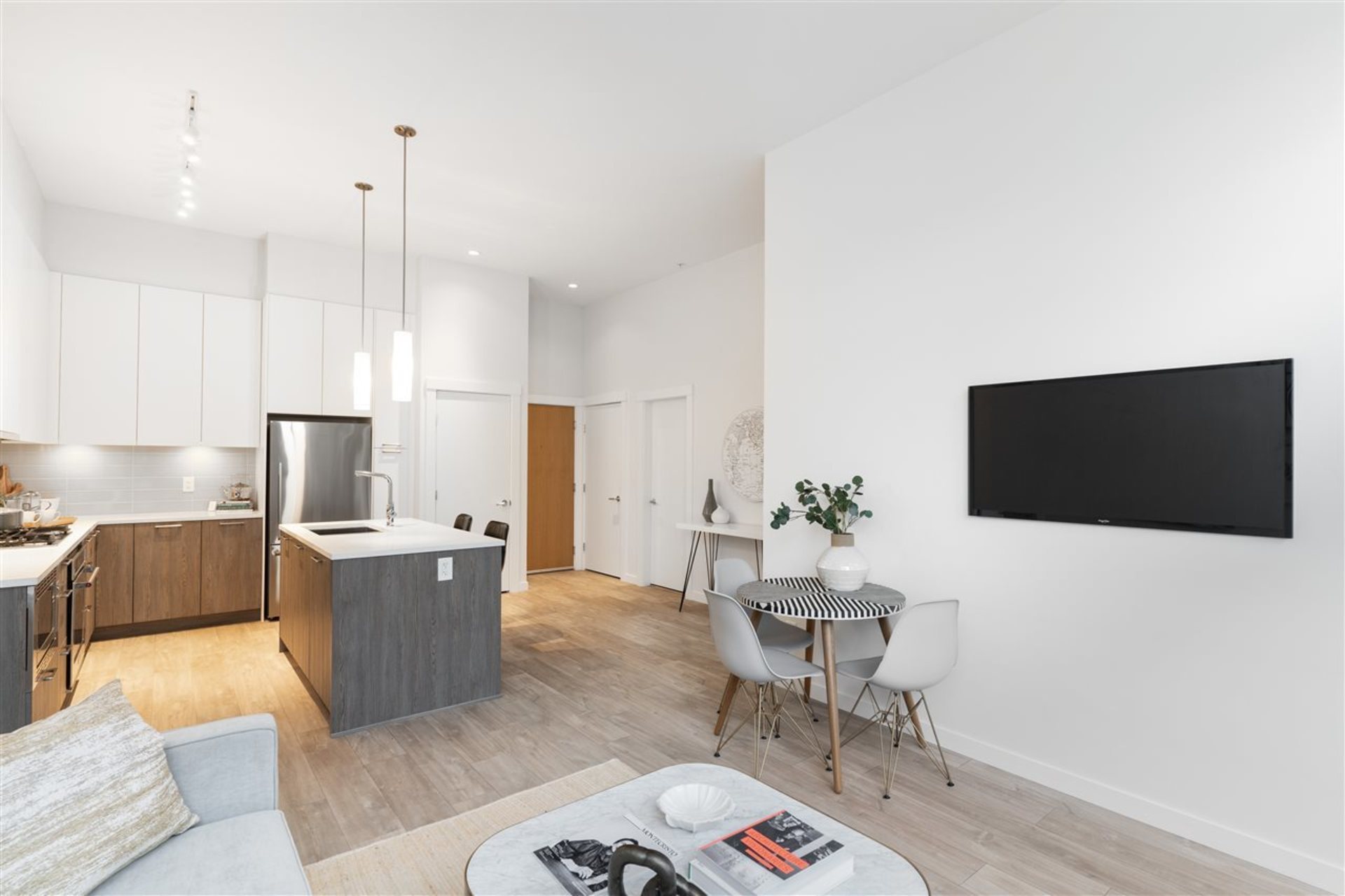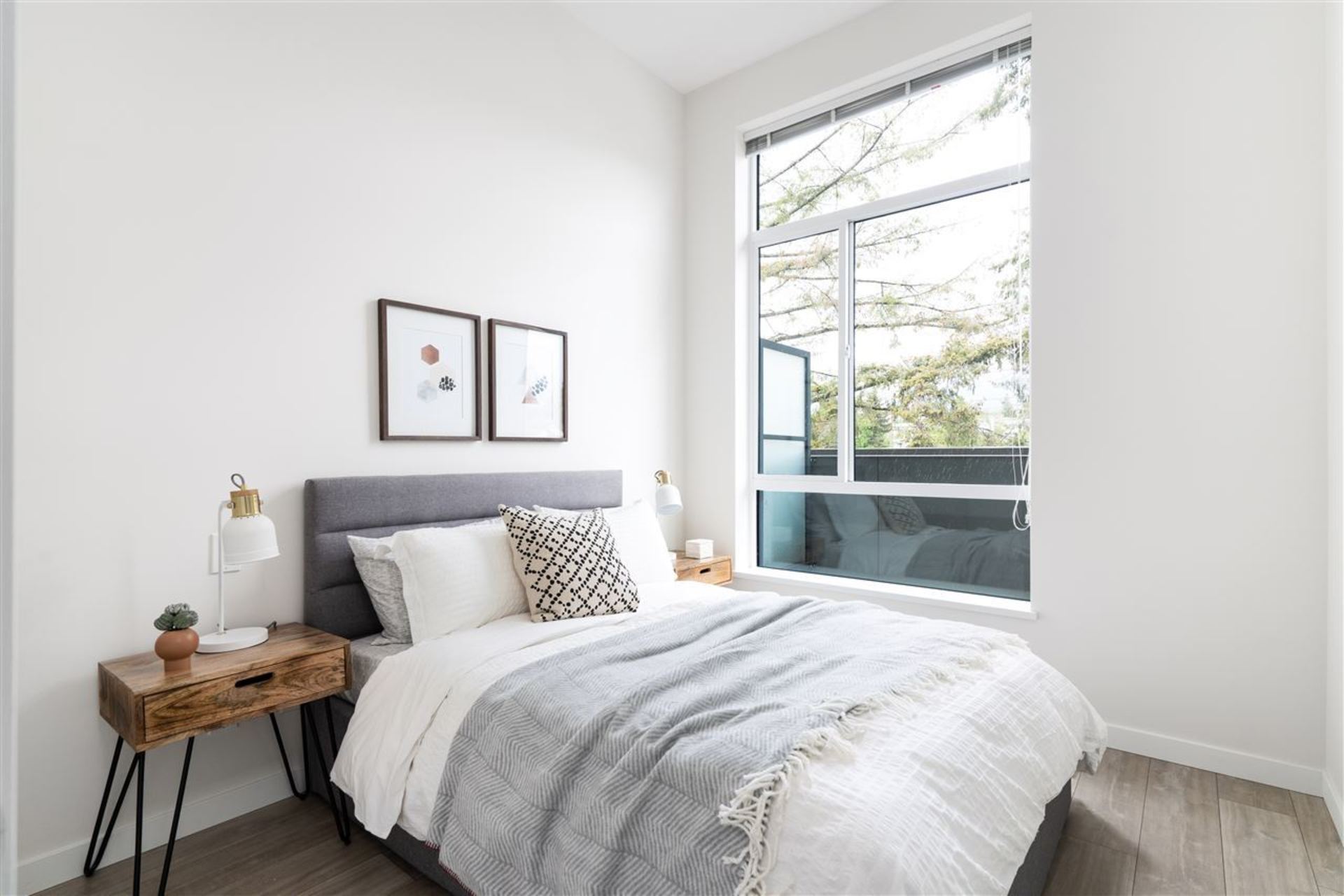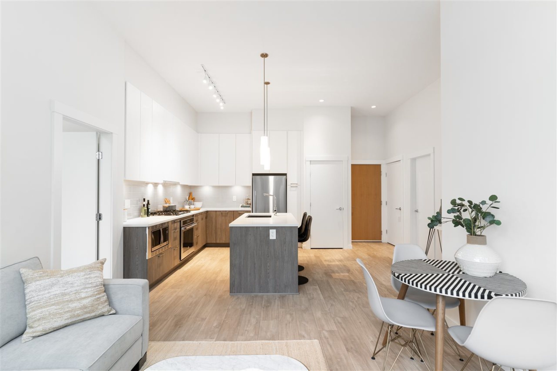PENTHOUSE at KINDRED-like new, gorgeous suite with stunning 11ft ceilings, a fantastic layout and a spacious private balcony. This unique West Coast inspired home has an open concept and features laminate floors, radiant in-floor heating and floor to ceiling windows. Enjoy entertaining in the sleek kitchen with quartz counters, premium stainless steel appliances, a 5-burner gas range and soft close cabinetry. Relax with a glass of wine on your private 184 sq.ft outdoor terrace with mountain views. Queensbury is a blossoming community and top floor homes like this rarely come to market. The building has a lounge, visitors parking and communal green spaces. One parking and locker included. Pets and rentals welcome. Maintenance fees include hot water, heat and gas. This home is beautiful!