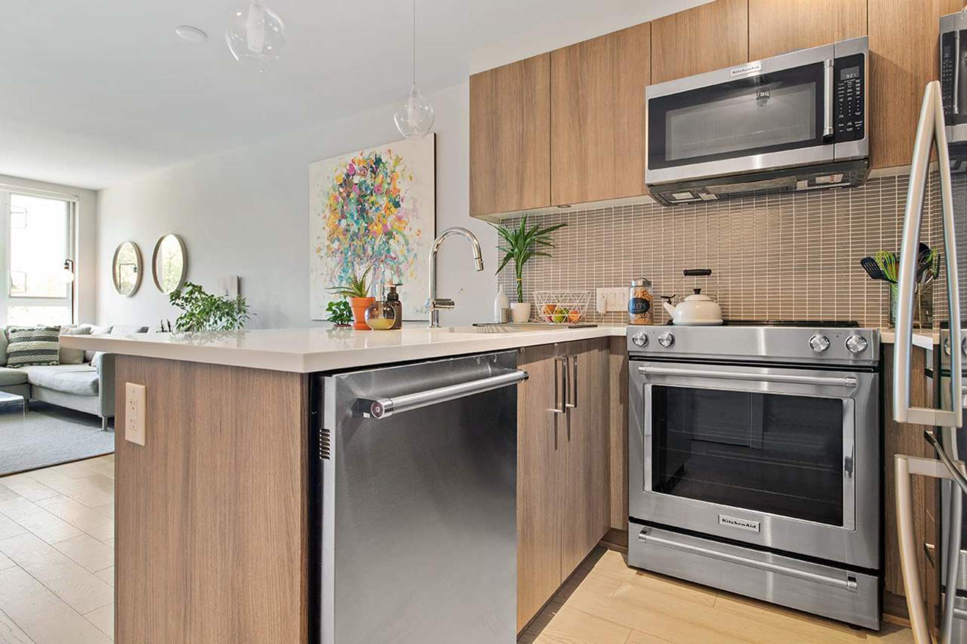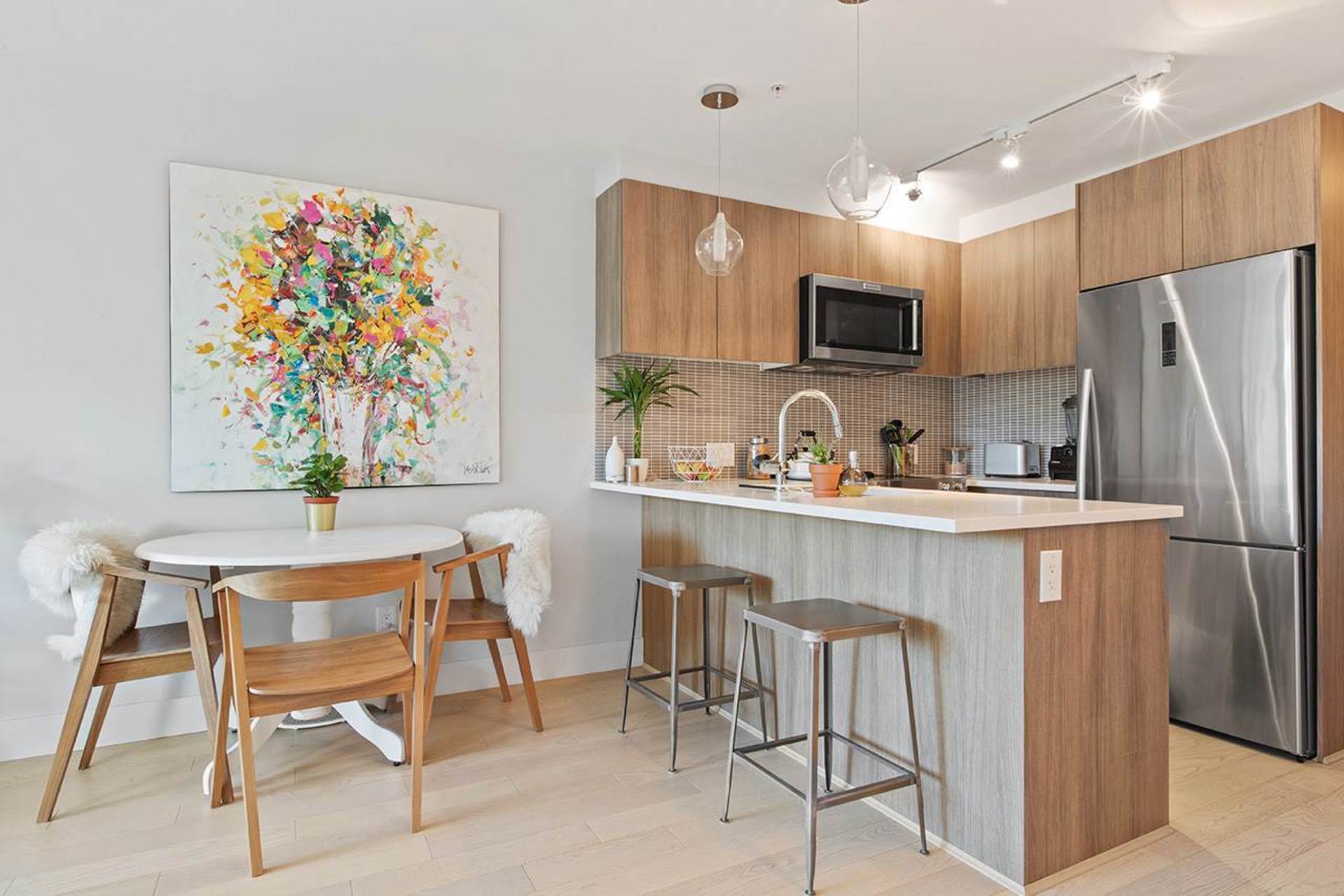 Welcome to Midtown. A boutique, mid-rise concrete building located in the heart of Mount Pleasant, mins away from trendy Main St. This 1 bed plus lrg den/office features an abundance of in-suite storage including a linen closet, coat closet, pantry, & flex room. Boasting 662 SQFT, this open plan unit offers engineered oak hardwood flooring throughout, custom-built walk-in closet, quartz countertops, Grohe faucets, SS appliances & full-sized washer and dryer. The building was built in 2016 & has a common terrace with a community garden, BBQ, and eating/entertaining space. Pet friendly with rentals allowed (including AIR BNB). 1 secure parking, bike rack & storage locker incl. Nestled between 2 parks, each 1 block away. Steps to transit, breweries, coffee shops, restaurants and so much more!