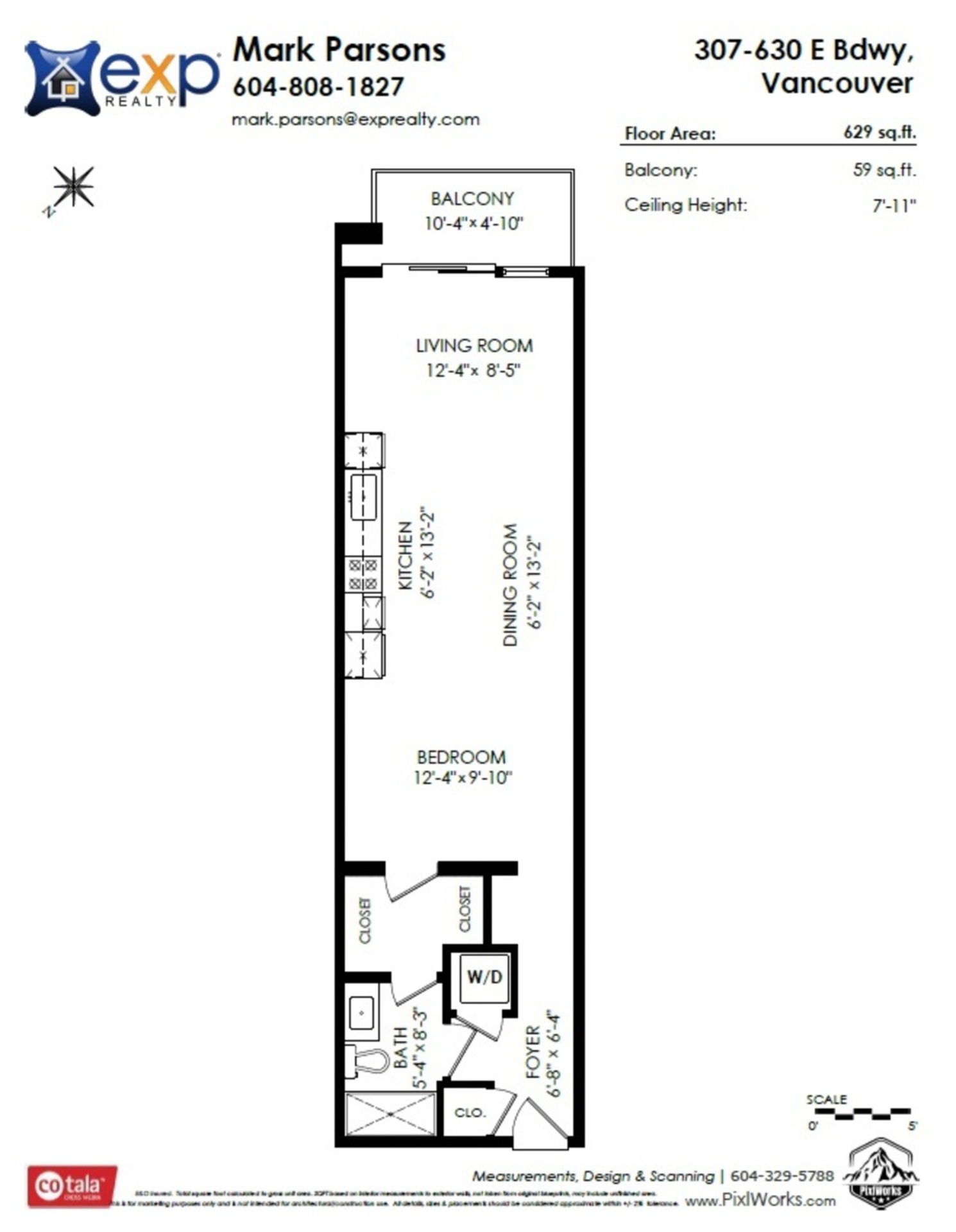 Welcome to Midtown Modern, completed in 2019 by PortLiving. Incredible opportunity to purchase desirable Mt. Pleasant Studio! Your chance to own this stunning unit with an open floor plan and clean contemporary finishes. Gourmet kitchen boasts quartz counter tops, spa inspired bathroom, wide-plank flooring. This condo has a Walk Score of 84 out of 100. This location is Very Walkable so most errands can be accomplished on foot. 630 East Broadway is a 15 minute walk from the Millennium Line at the VCC-Clark Station Platform 2 stop. Nearby parks include Sahalli Park, Dude Chilling Park and Guelph Park. For virtual tour please visit: https://bit.ly/630-Broadway-Condo-VT