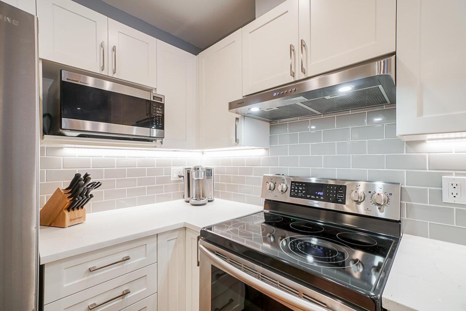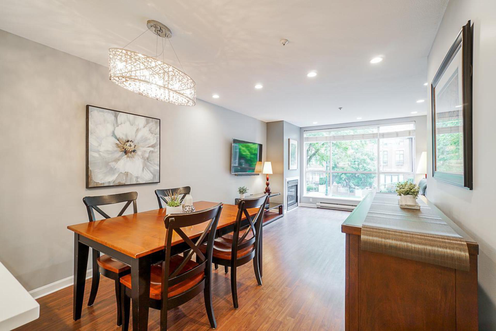 Beautiful LARGE one bedroom with solarium at the Connaught in Arbutus Walk area! Updated modern kitchen includes S/S appliances, quartz counters with breakfast bar and plenty of cabinet/counter space. Bedroom easily can accommodate a king size bed with cheater ensuite access. Bathroom has been recently updated with new vanity, quartz counters and lovely tub. Gas fireplace in the living area great for those cool nights! Open concept living and dining which has plenty of space for a 6 seat dining table. Steps away to Connaught Park, Kits Community Centre, Grocery stores and restaurants! Pet and rental friendly with restrictions. Insuite laundry, insuite storage/pantry area, one parking and one storage locker.