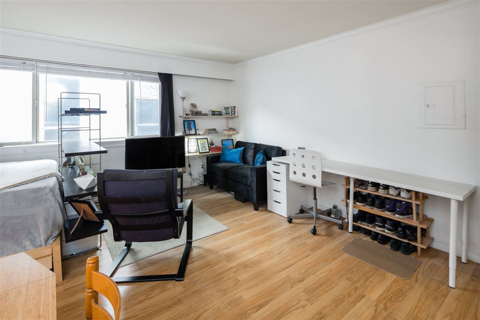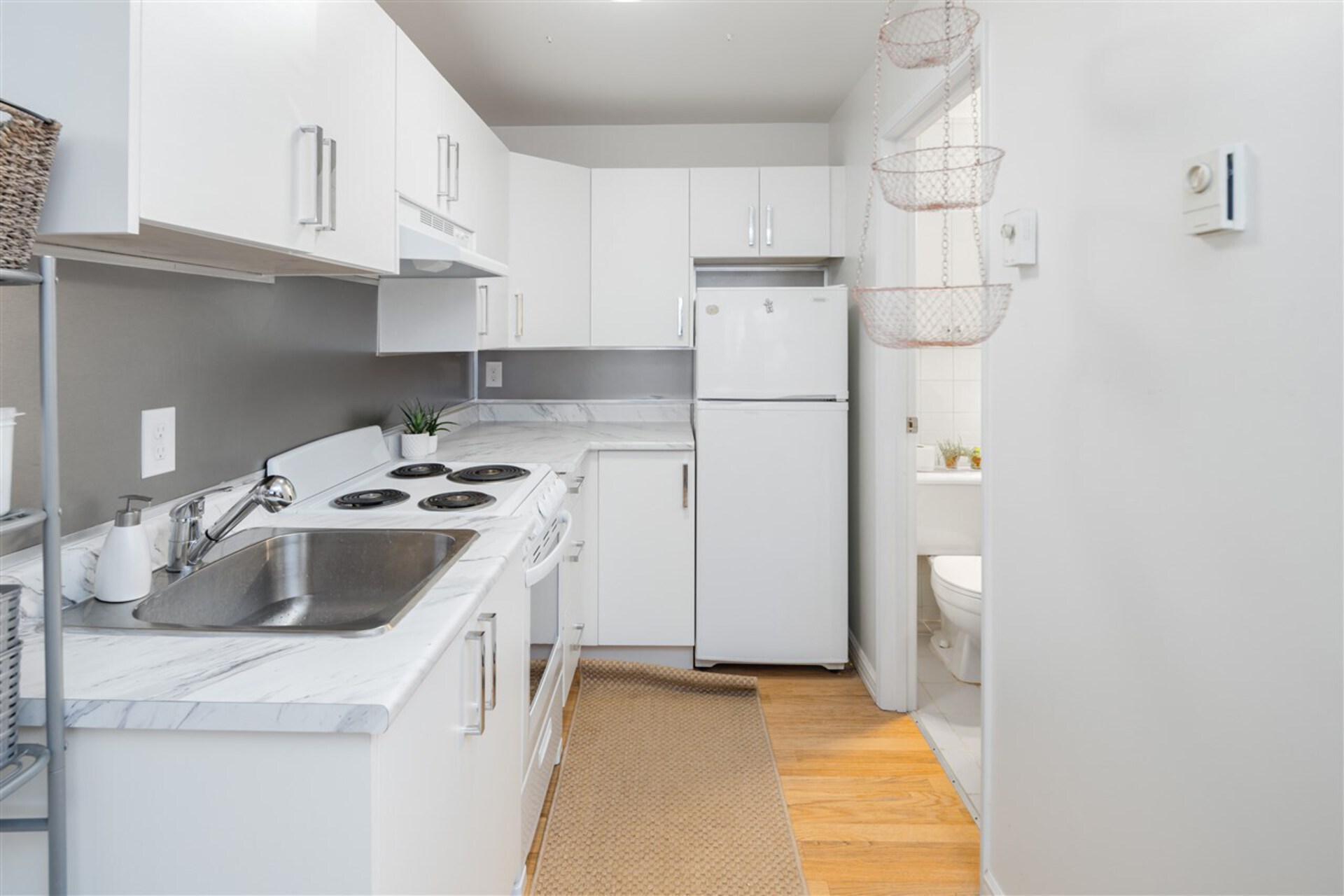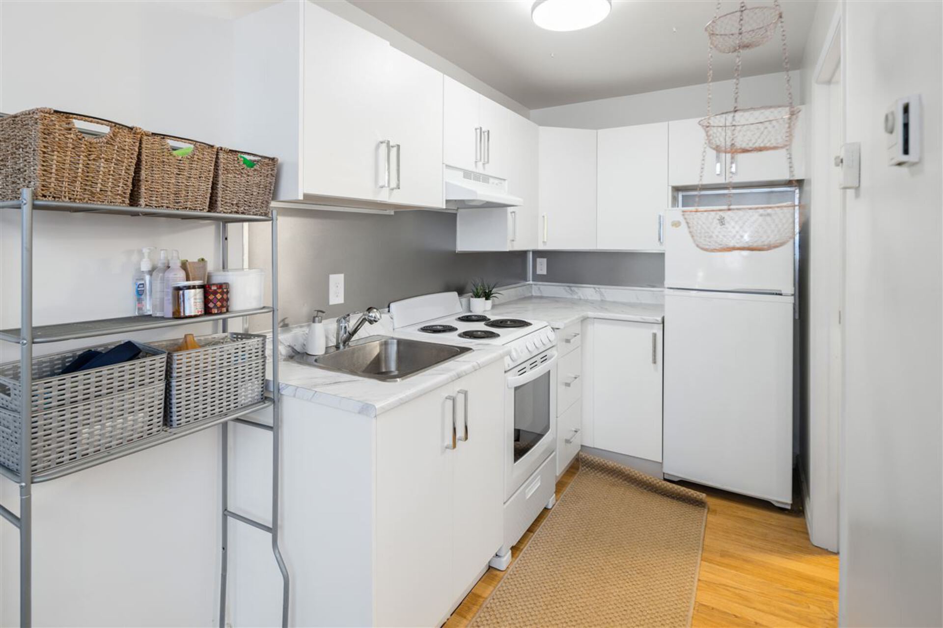 Welcome to 'Bourbon Court' a boutique brick, charming building West of Denman! A perfect pied-à-terre, investment or entry into the market. Pet and rental friendly in the heart of the West End. This is a serene & private well kept studio suite with upgrades to the kitchen and bathroom. *1st floor but NOT on the ground level* Storage locker included but no parking. Permit parking available and always spaces right outside the building. This is a gem and easy to show!