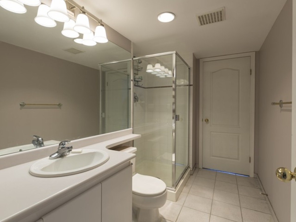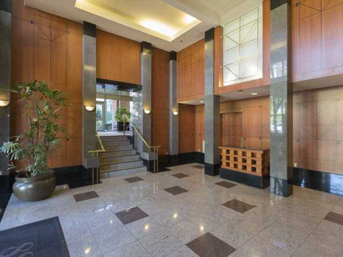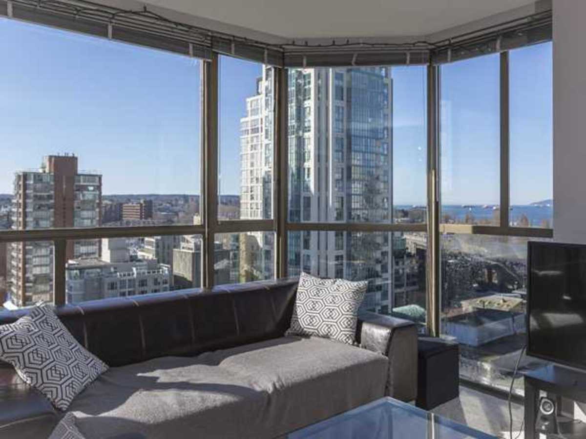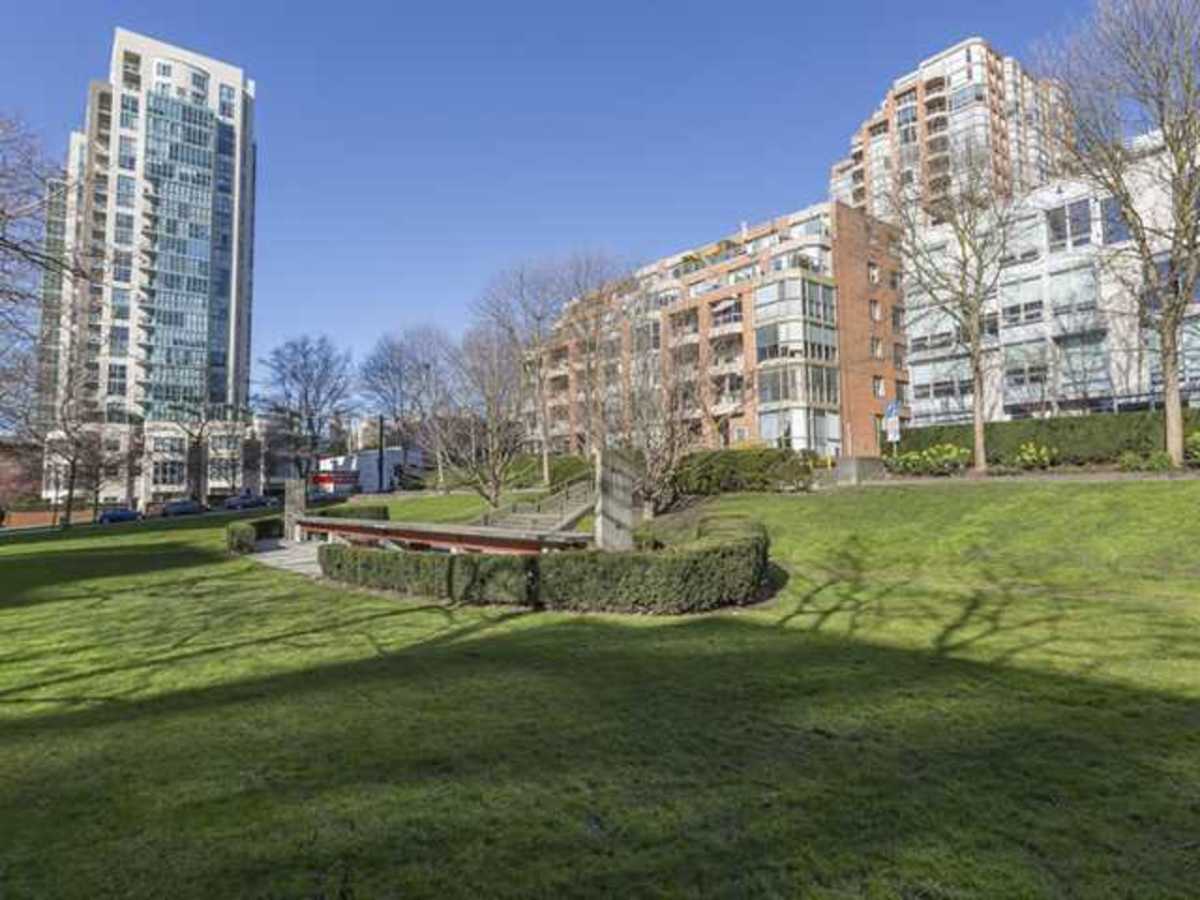 PACIFIC PROMENADE: 2 bedroom, 2 bath of 882 SF offers in suite storage easily converted to a computer office. This SOUTHWEST corner suite offers partial water views from False Creek to English Bay. Light filled suite provides floor to ceiling windows, neutral carpet throughout, kitchen with West facing picture window, open South exposed BBQ balcony and sizeable ensuite bedrooms, well positioned for privacy. Functional layout also features spacious dining area currently used as a home office. Pet friendly building, rentals permitted. 1 secure parking and storage locker included. Fabulous location, a short walk to the Beach or Downtown and steps to the ferry boat to Granville Island.